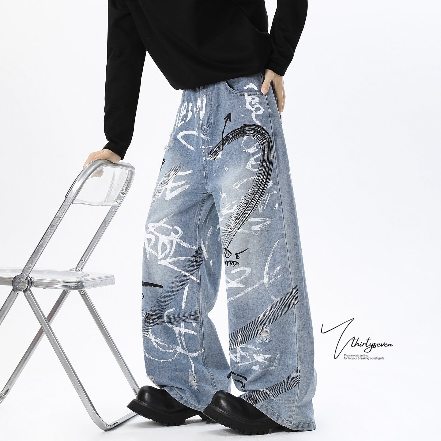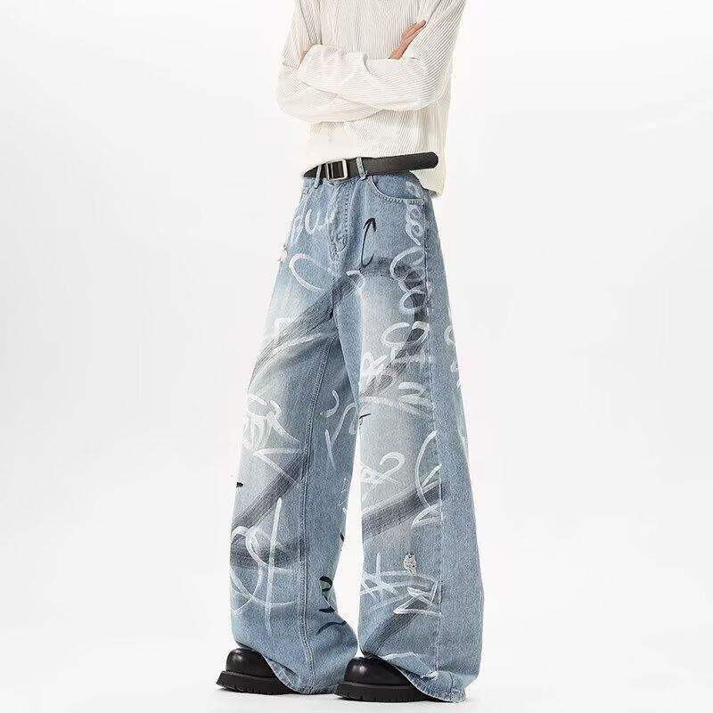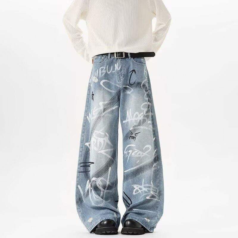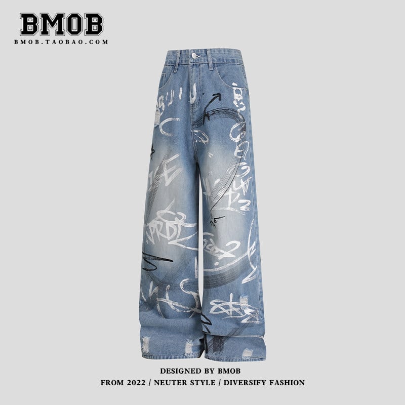 ♥ワイルドで魅力的なデニムパンツ!【BOBMシリーズ】★デニムパンツ★ 落書き ボトムス ズボン ユニセックス メンズ ファション