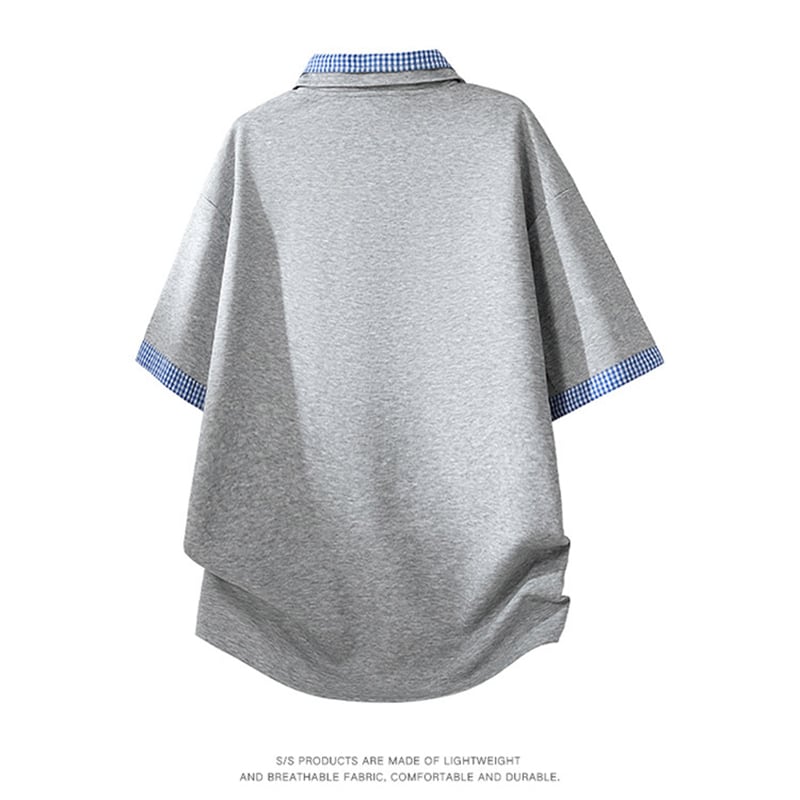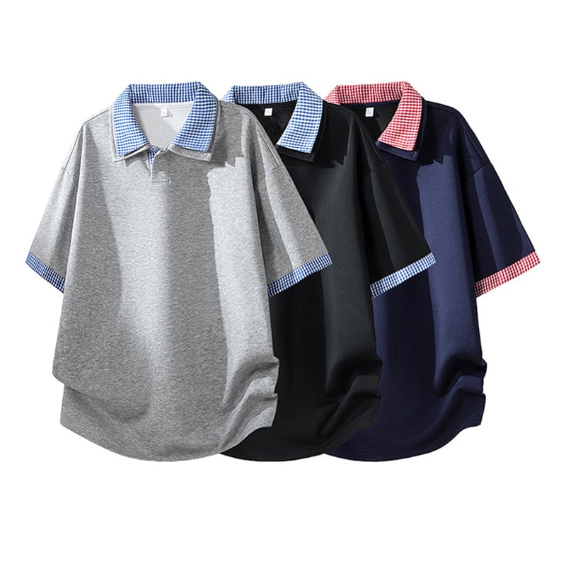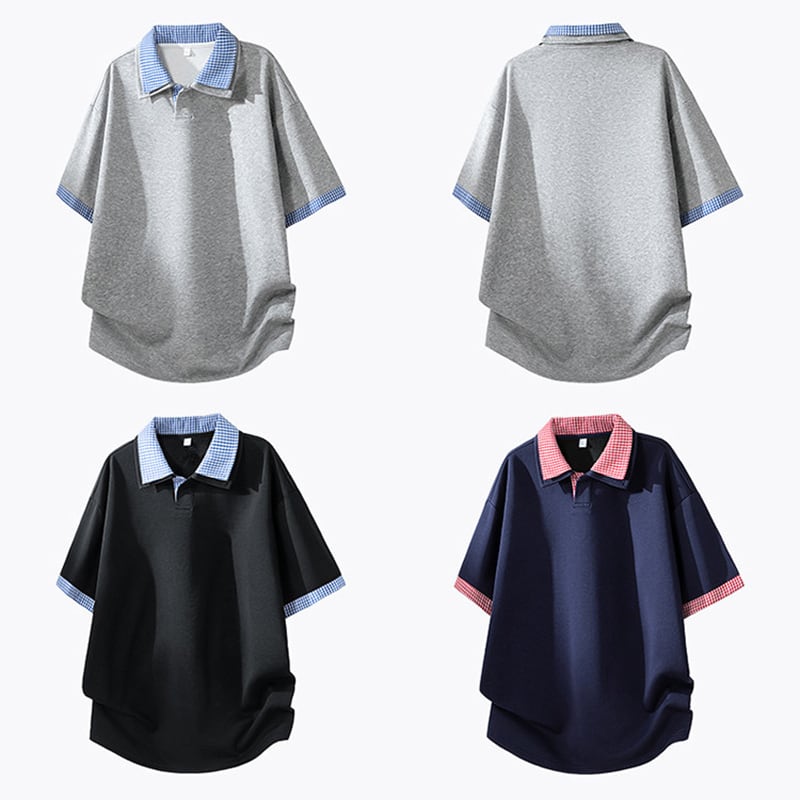 ♥フェイクレイヤードPOLOシャツ!【WSシリーズ】★POLOシャツ★ ユニセックス 3color トップス メンズ 大きいサイズ 配色 チェック柄