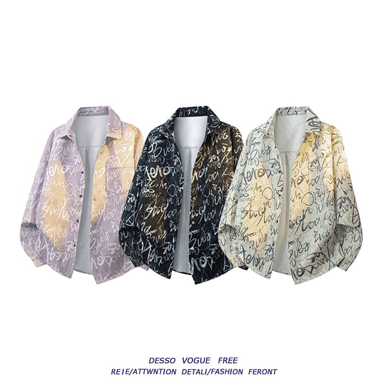 ♥個性的なシャツジャケット!【WSシリーズ】★シャツジャケット★ ユニセックス 3color アウター 大きいサイズ プリント