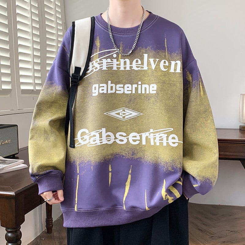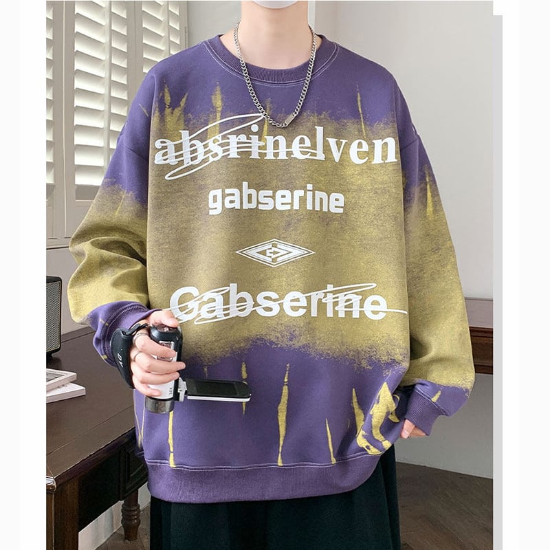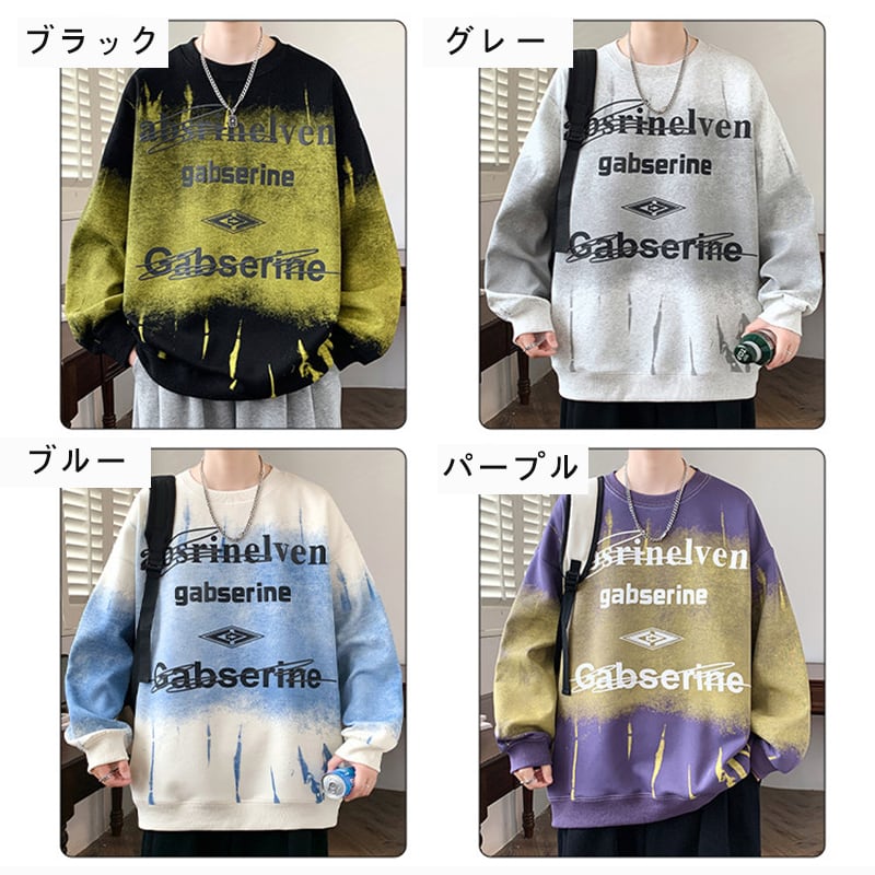 ♥クルーネックで楽ちん、でもデザインは個性的!【ZUOFEILIシリーズ】★トップス★ 4color スウェット ユニセックス メンズ カートゥーン 絞り染め アルファベット