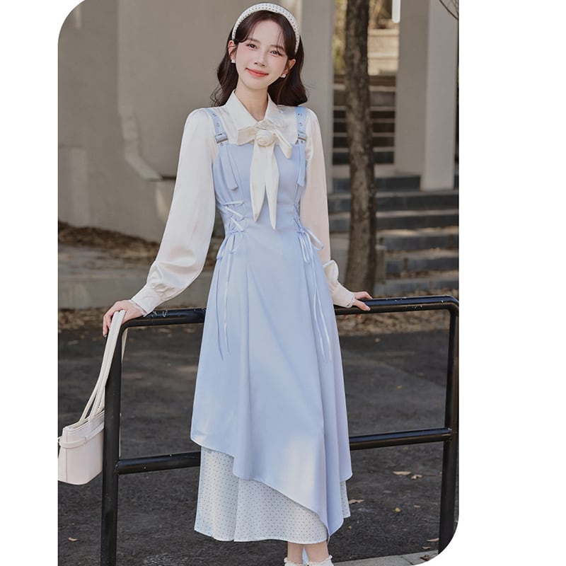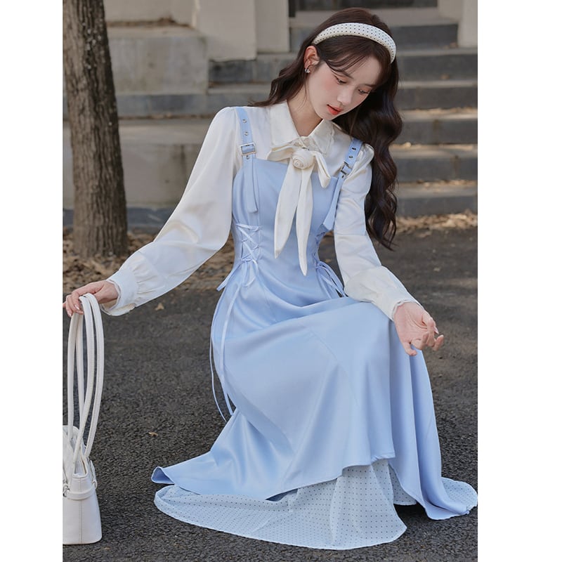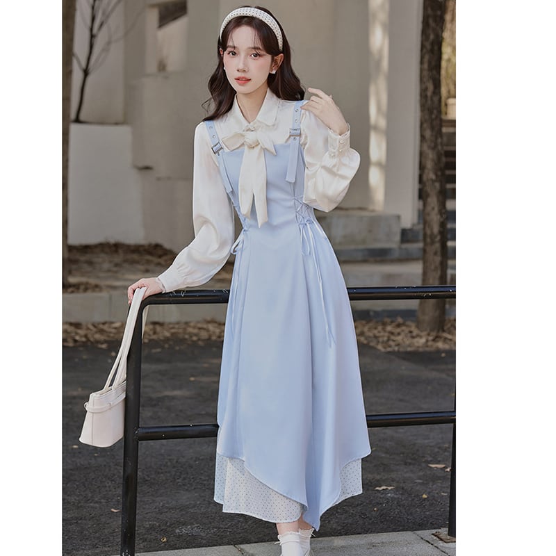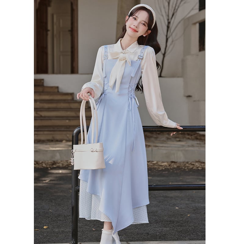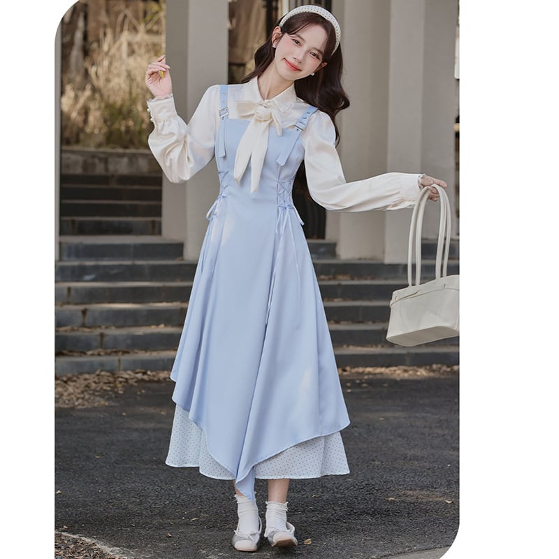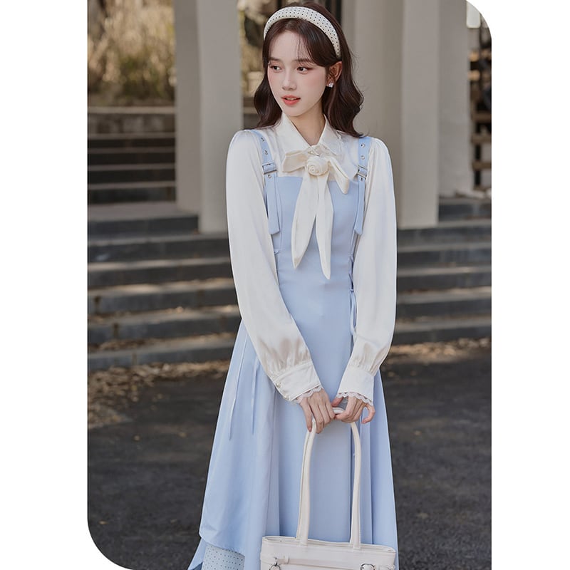 ❤甘すぎない大人可愛いサロペットセット!【茶味少女シリーズ】★セットアップ★ シャツ+つりワンピース 2点セット
