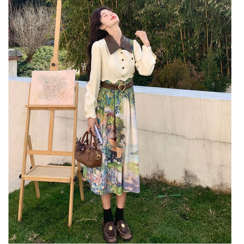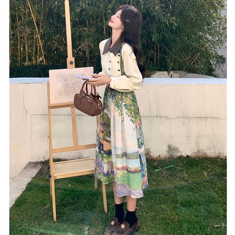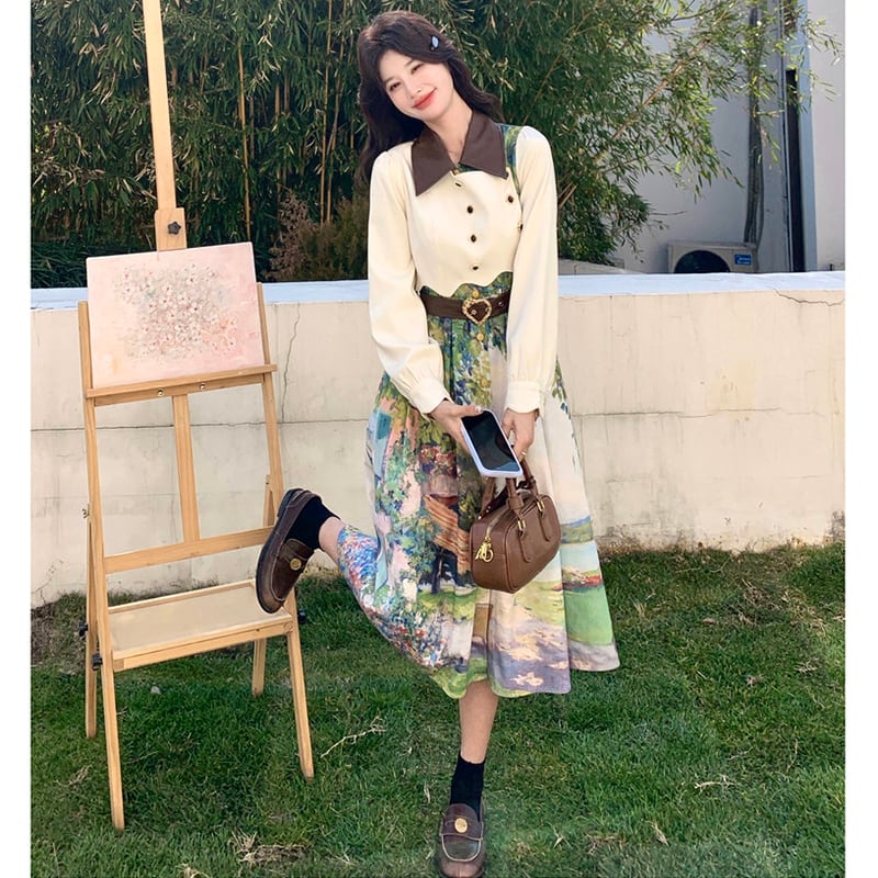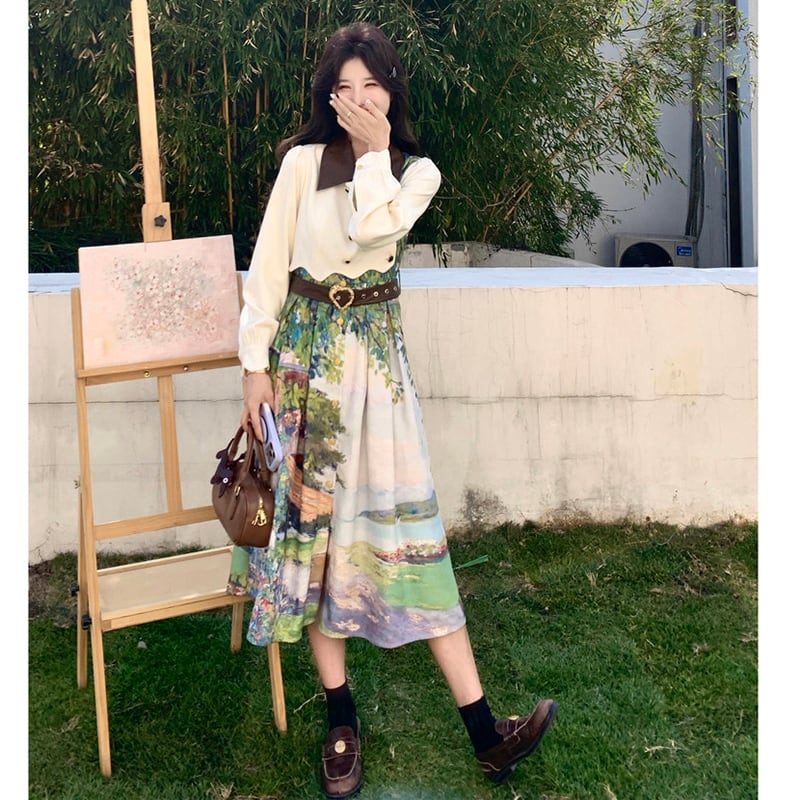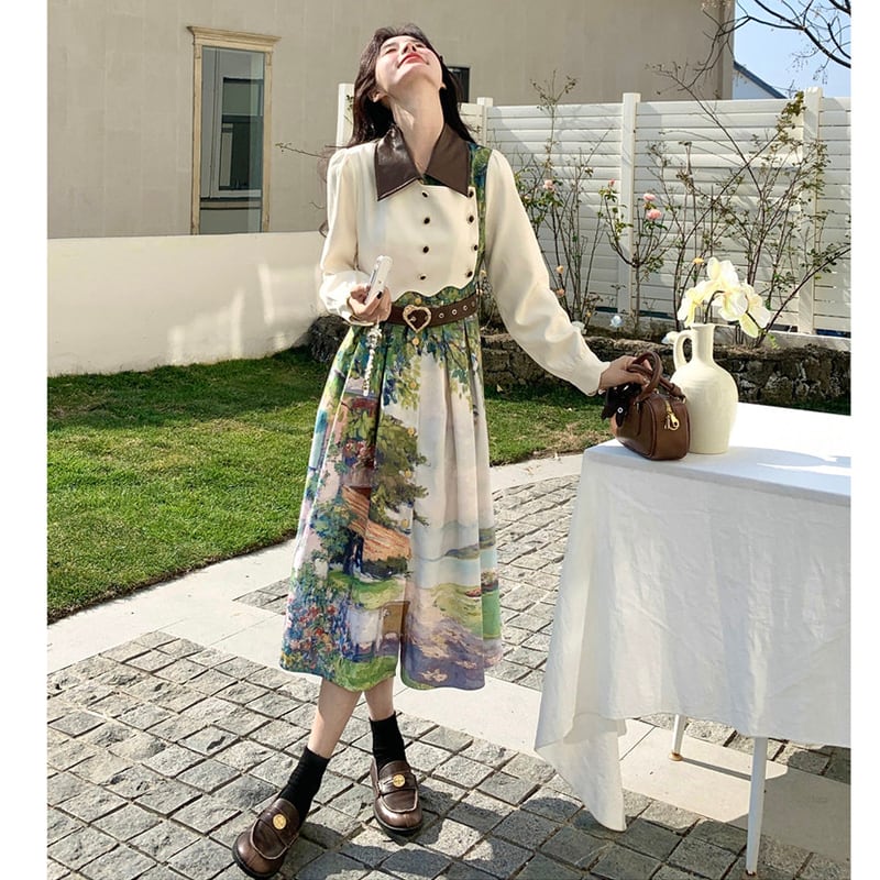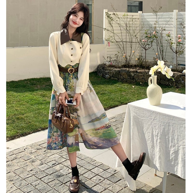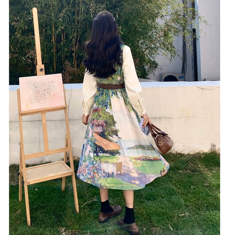 ❤キャンバスに描いたような花柄。一枚で完成するアートなワンピース!【Sun and moonシリーズ】★ワンピース★ レディース 長袖