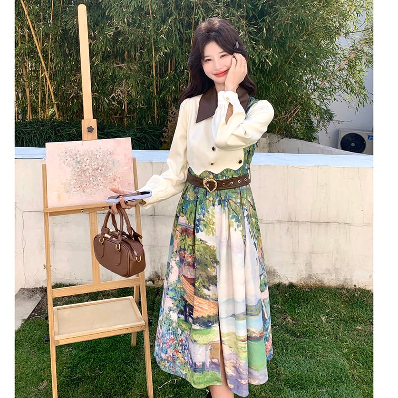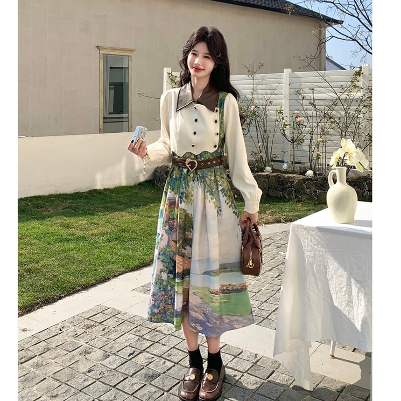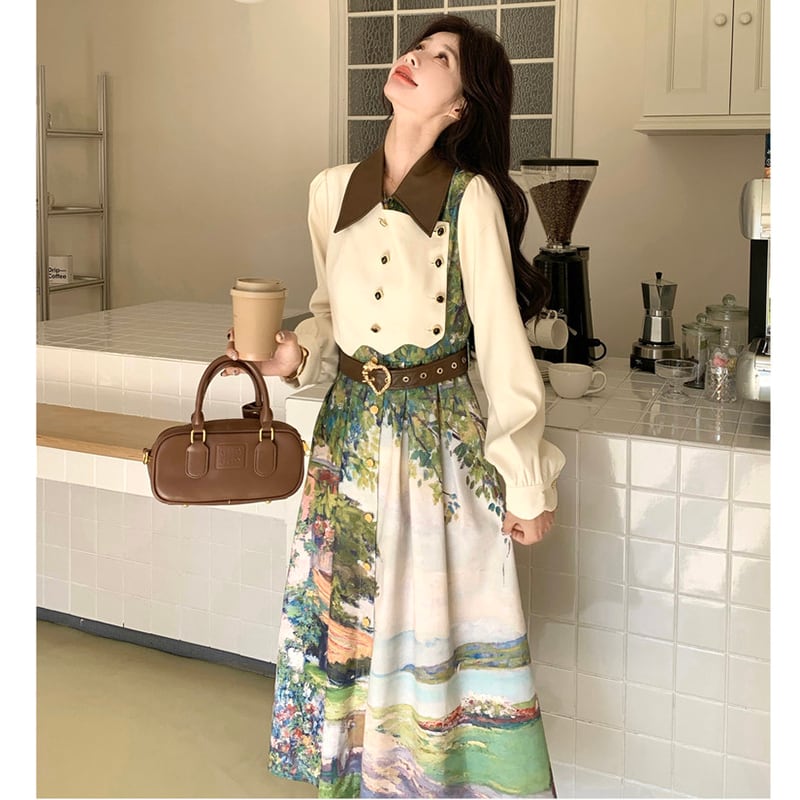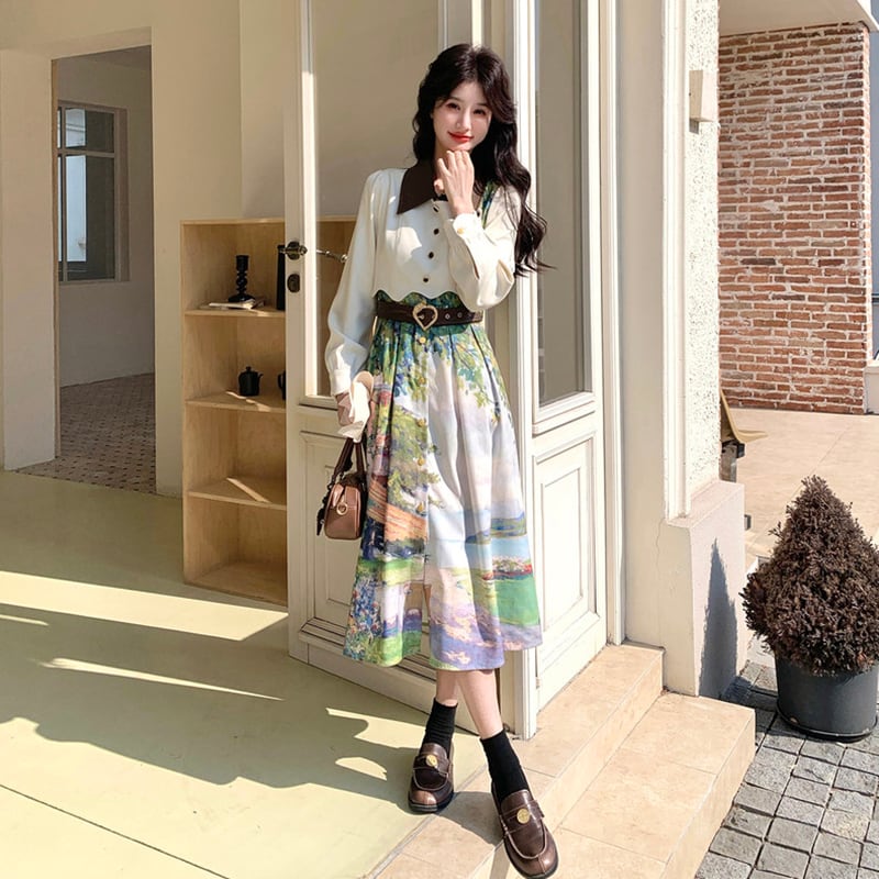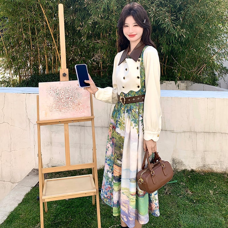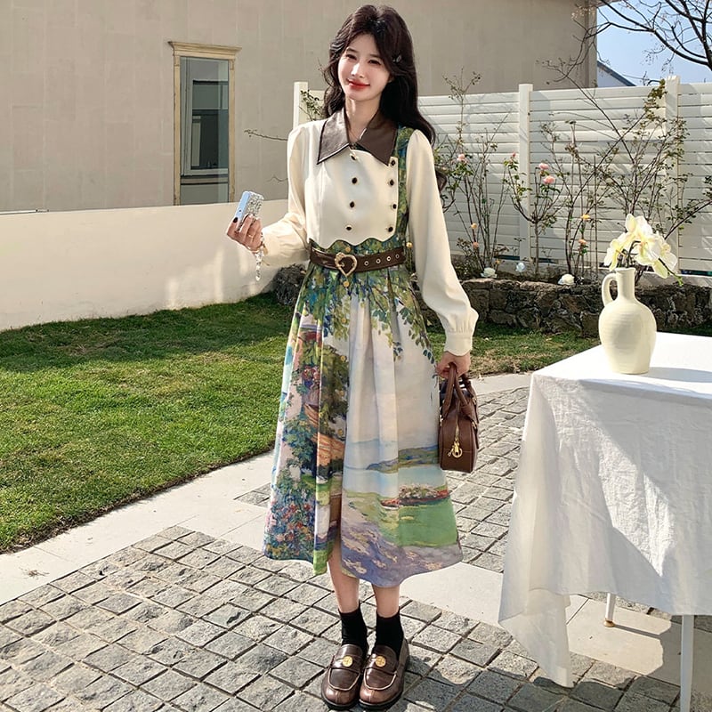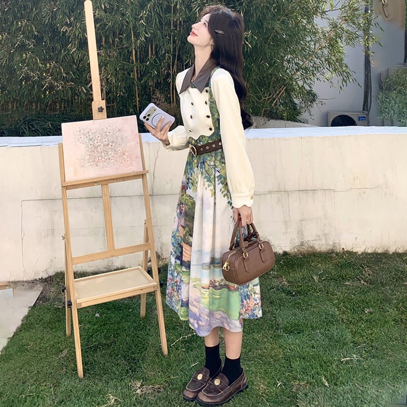 ❤キャンバスに描いたような花柄。一枚で完成するアートなワンピース!【Sun and moonシリーズ】★ワンピース★ レディース 長袖