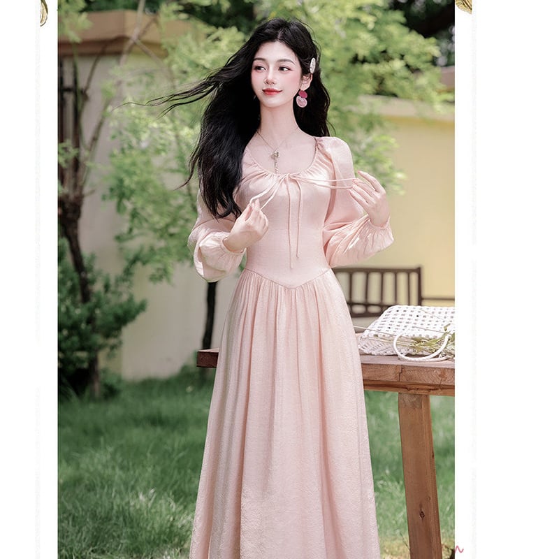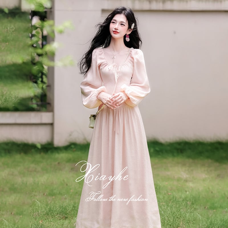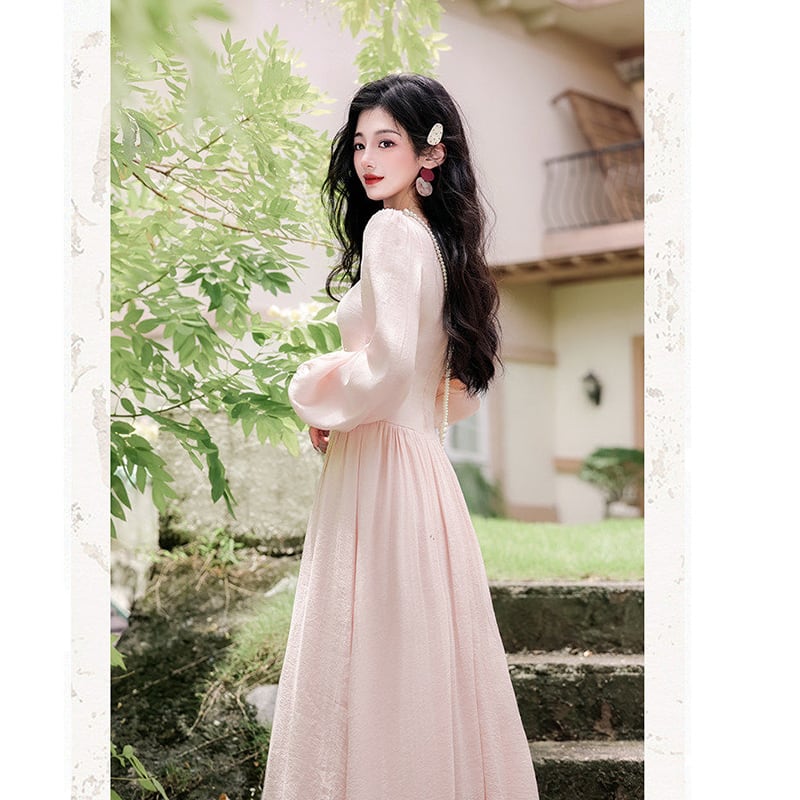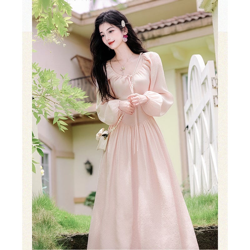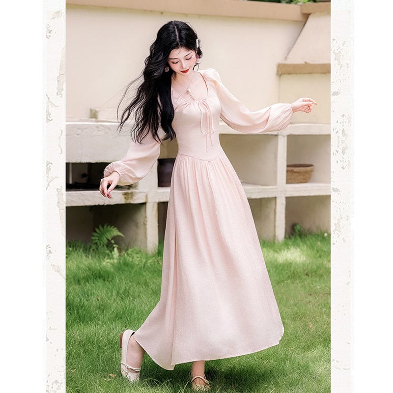 ❤ピンクで巡り会う、春の運命の一枚!【晚吟記シリーズ】★ワンピース★ レディース 長袖 ロング丈ワンピース 可愛い ピンク