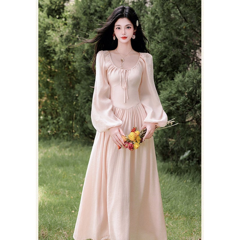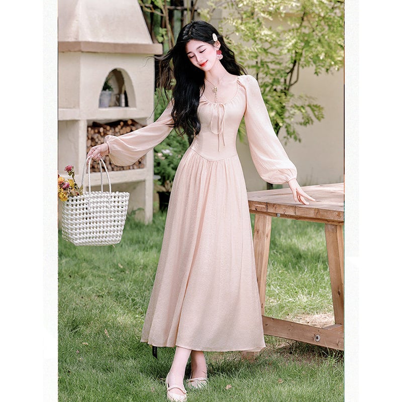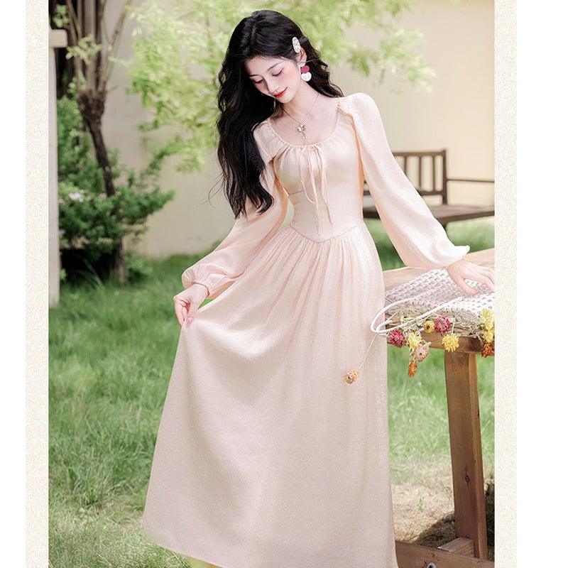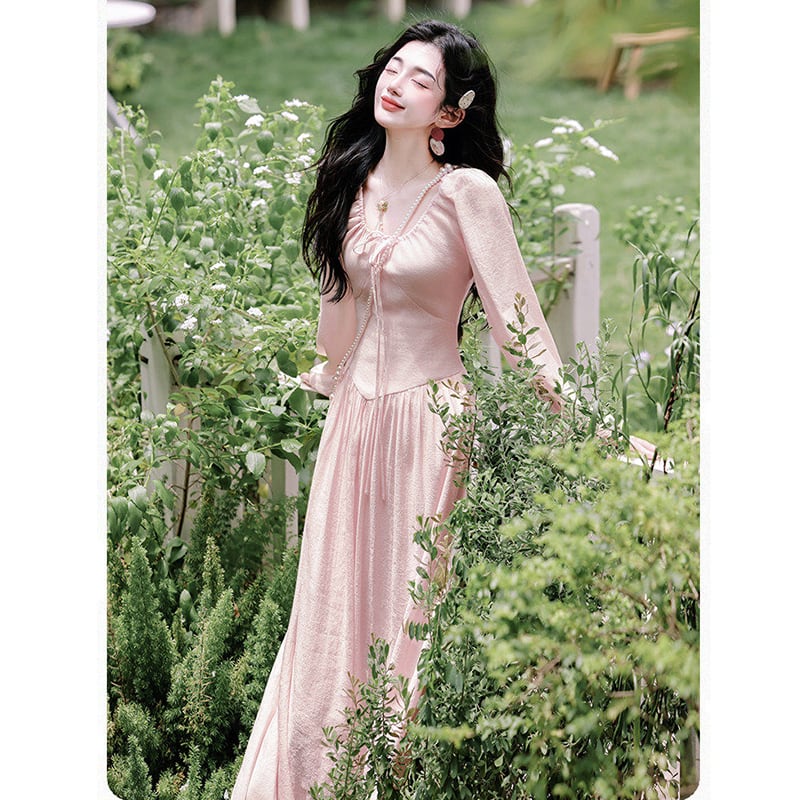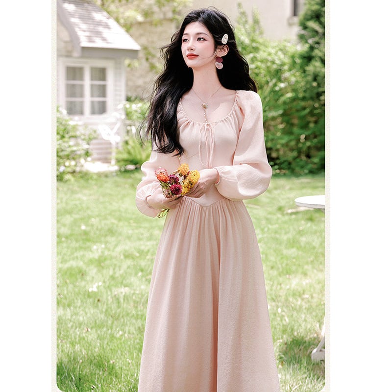 ❤ピンクで巡り会う、春の運命の一枚!【晚吟記シリーズ】★ワンピース★ レディース 長袖 ロング丈ワンピース 可愛い ピンク