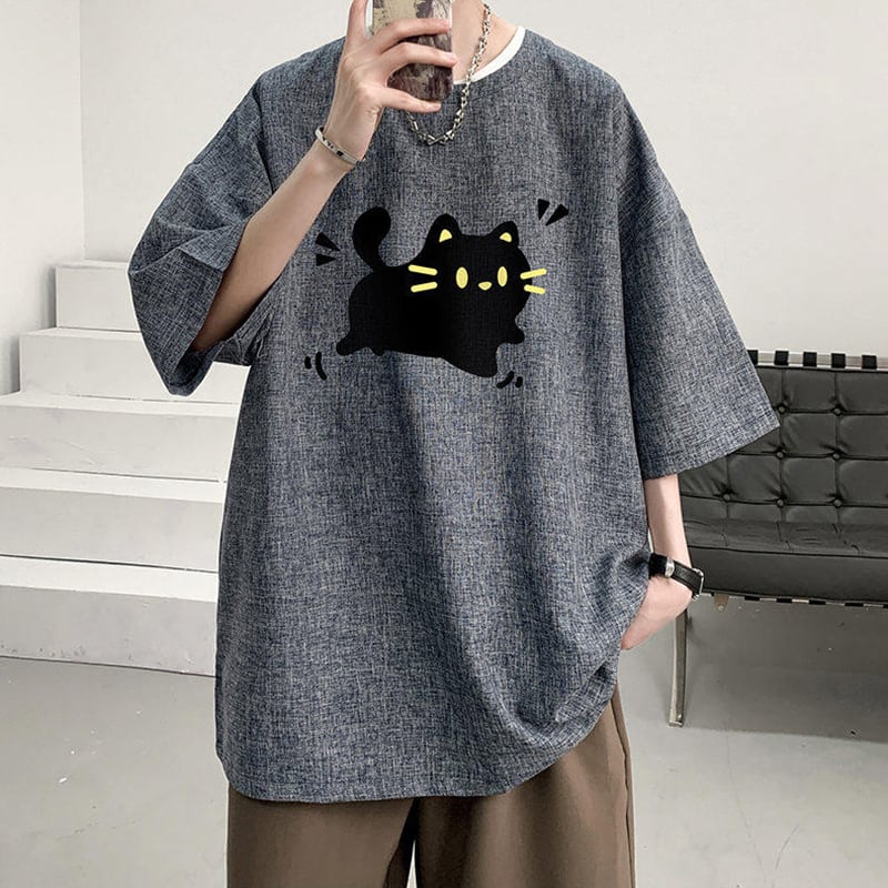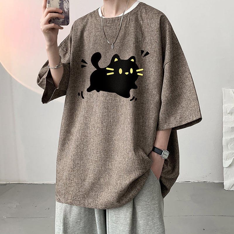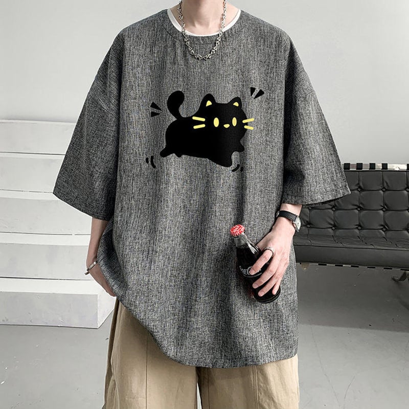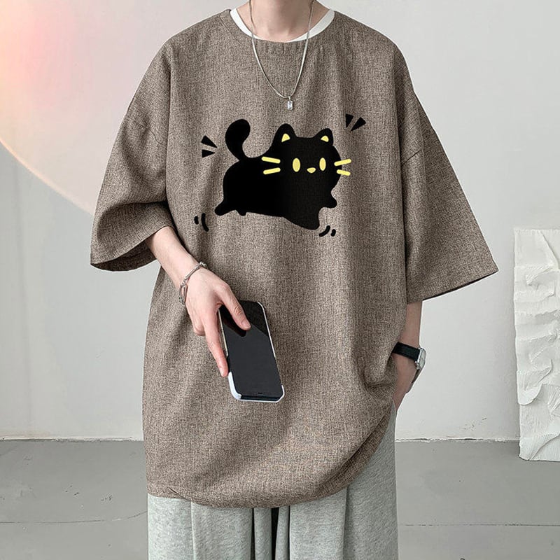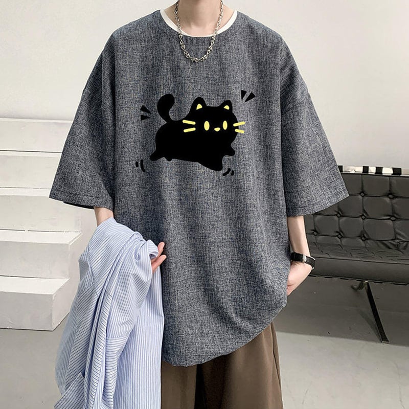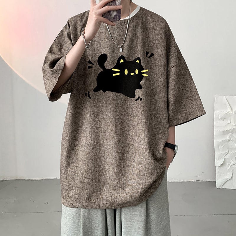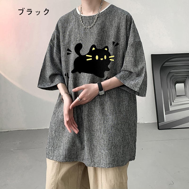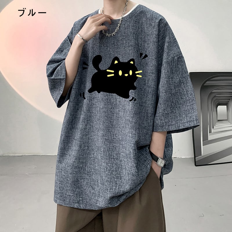 ♥猫と一緒に、夏を歩く!【LANGGUANGHUシリーズ】★チャイナ風トップス★ 3color Tシャツ 半袖 男女兼用 メンズ 大きいサイズ コットンリネン