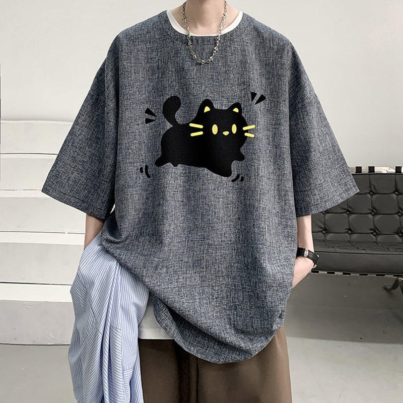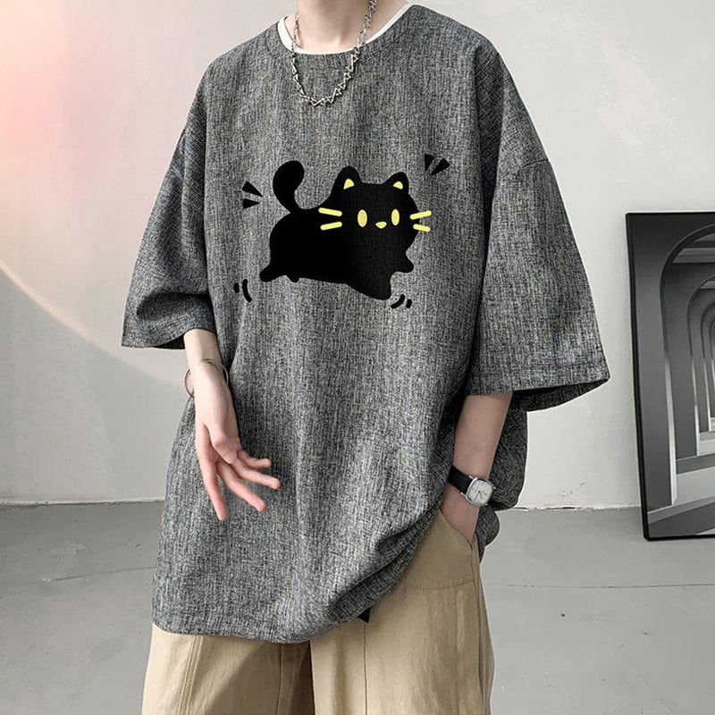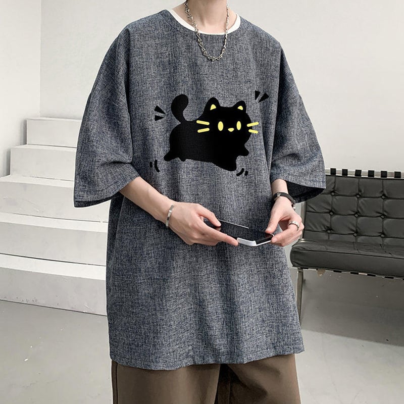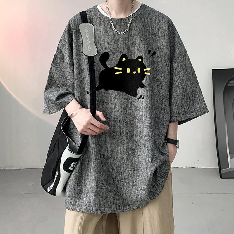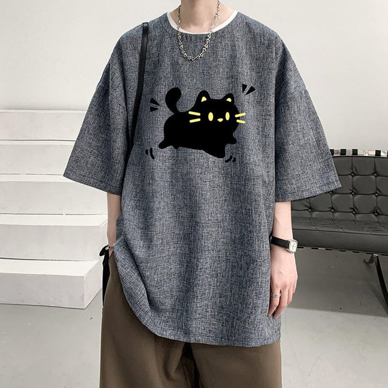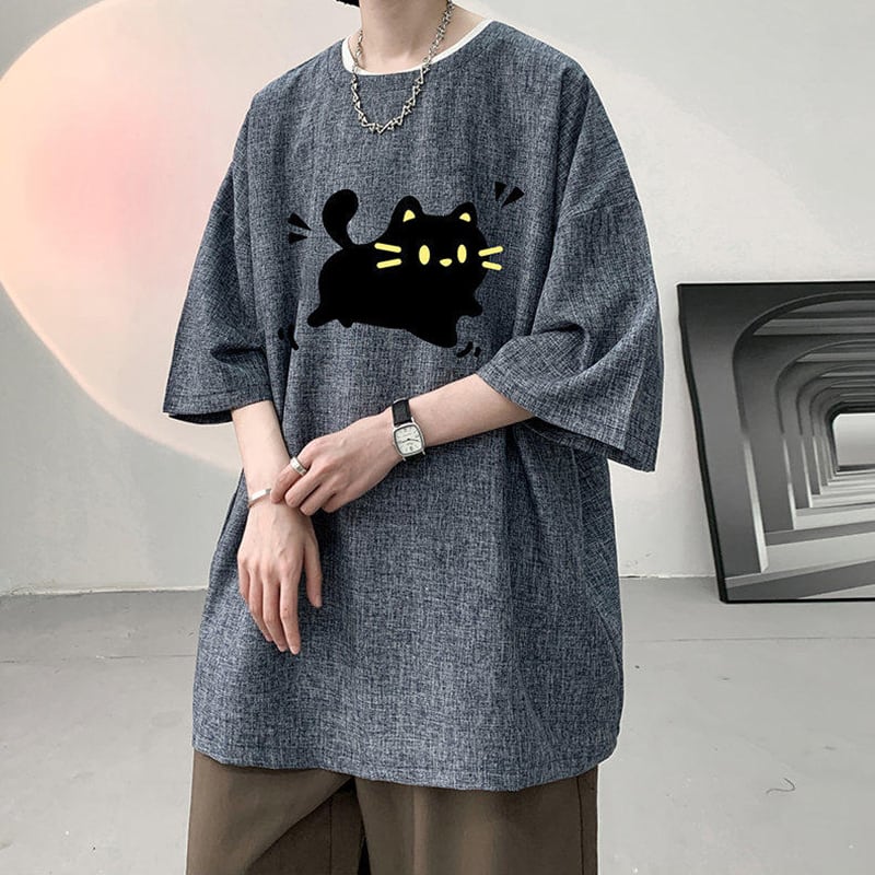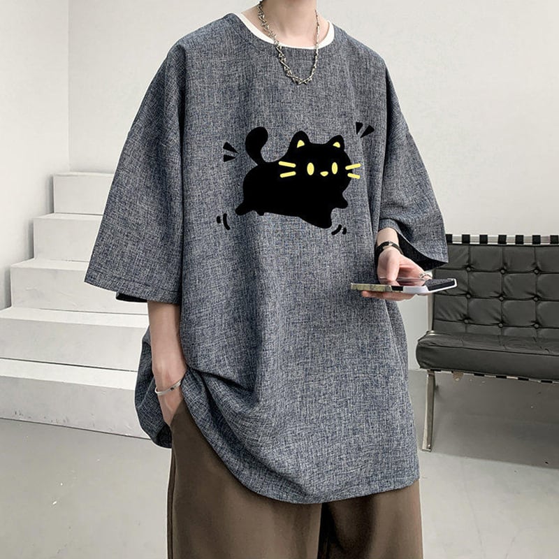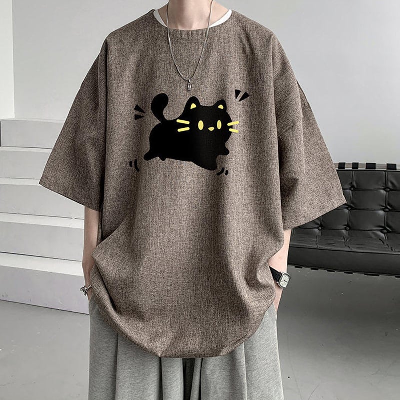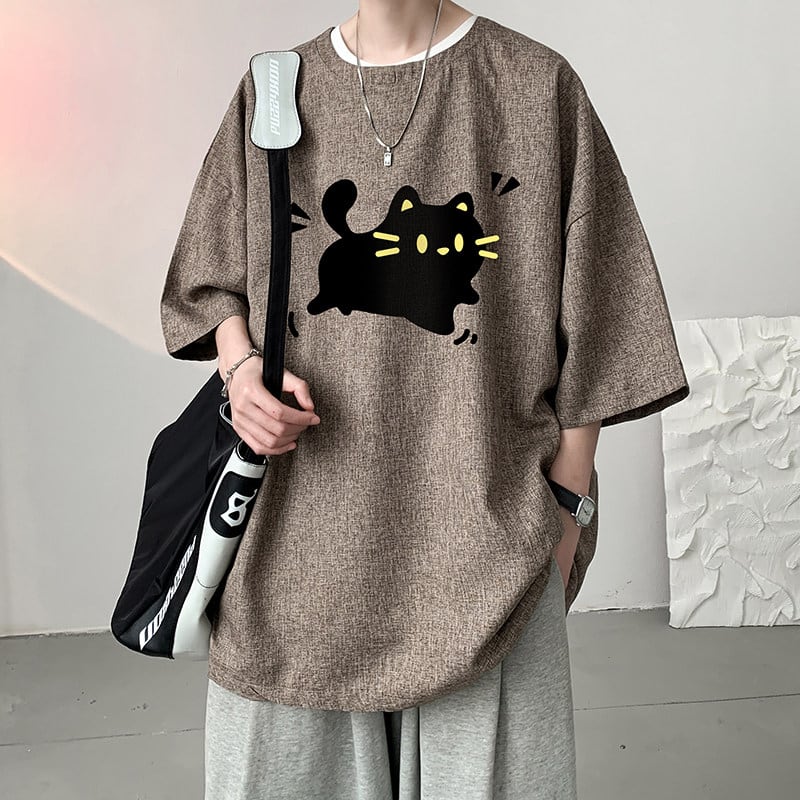♥猫と一緒に、夏を歩く!【LANGGUANGHUシリーズ】★チャイナ風トップス★ 3color Tシャツ 半袖 男女兼用 メンズ 大きいサイズ コットンリネン