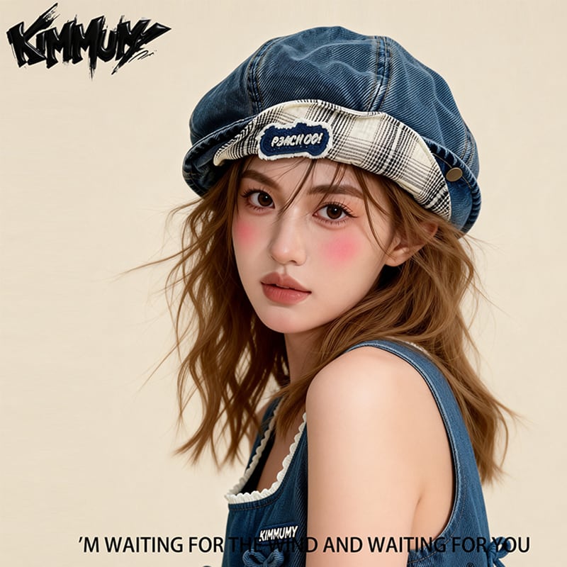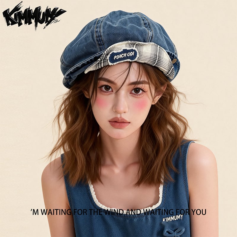 ♥今気分はデニムベレー!【Dear studioシリーズ】★帽子★ ハット 3color アクセサリー ベレー帽 デニム チェック柄