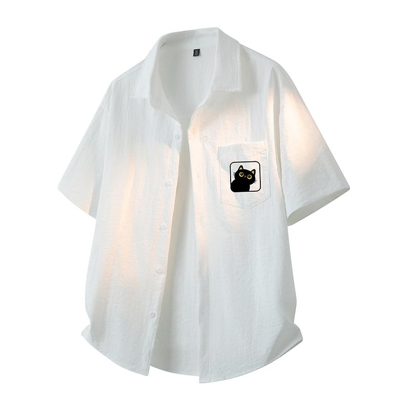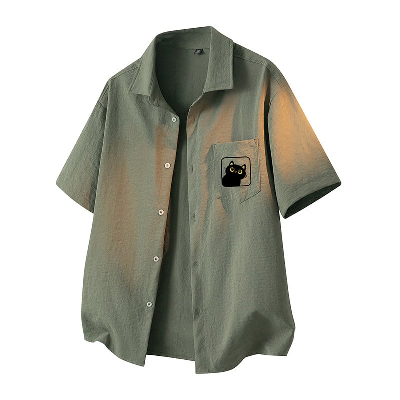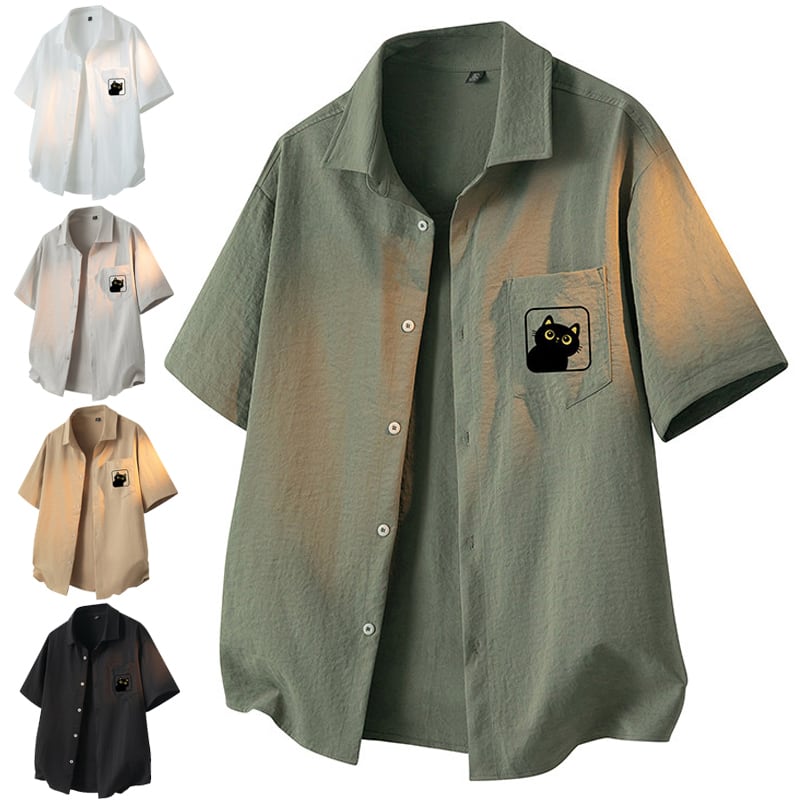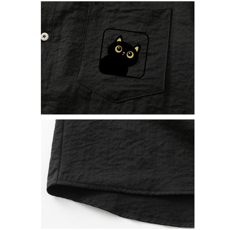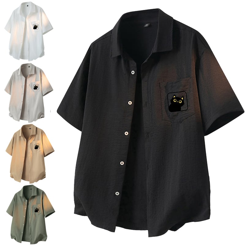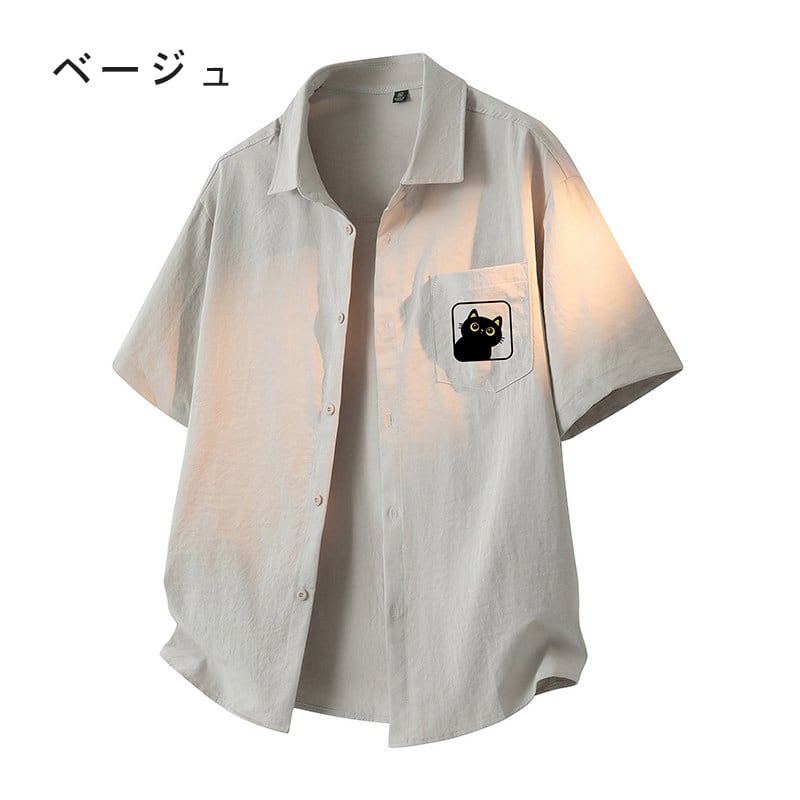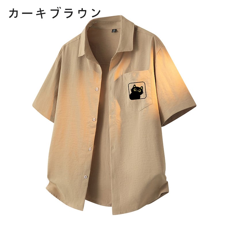 ♥5色展開猫柄半袖シャツ!【WSシリーズ】★シャツ★ 5color トップス 半袖 男女兼用 メンズ 大きいサイズ 猫 猫柄
