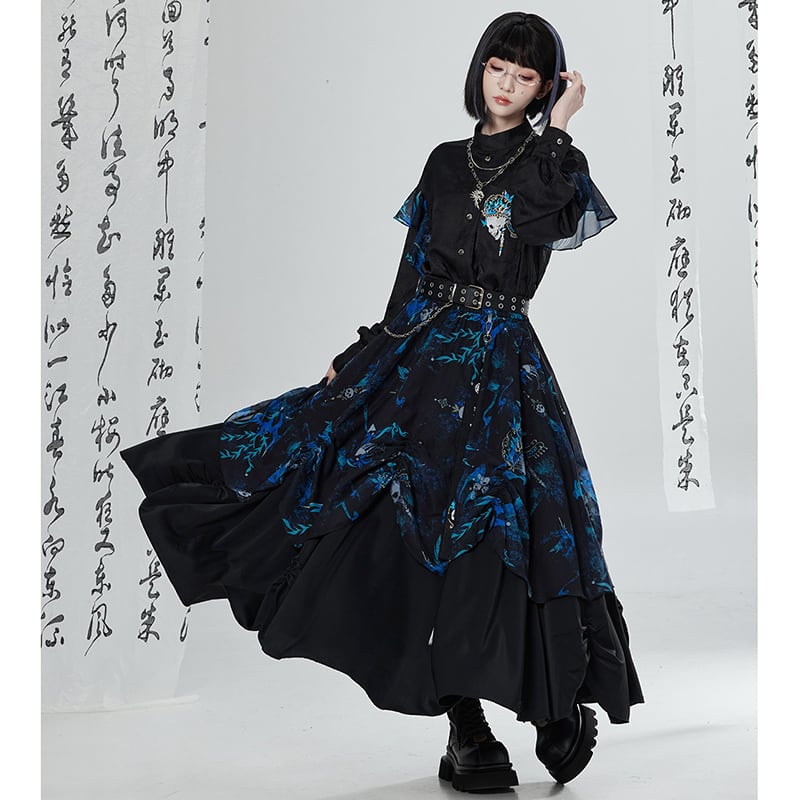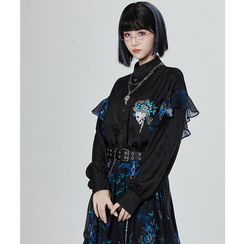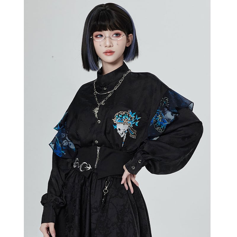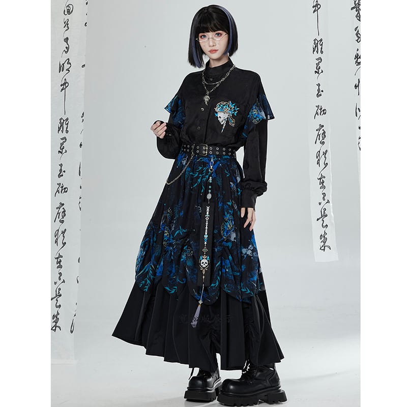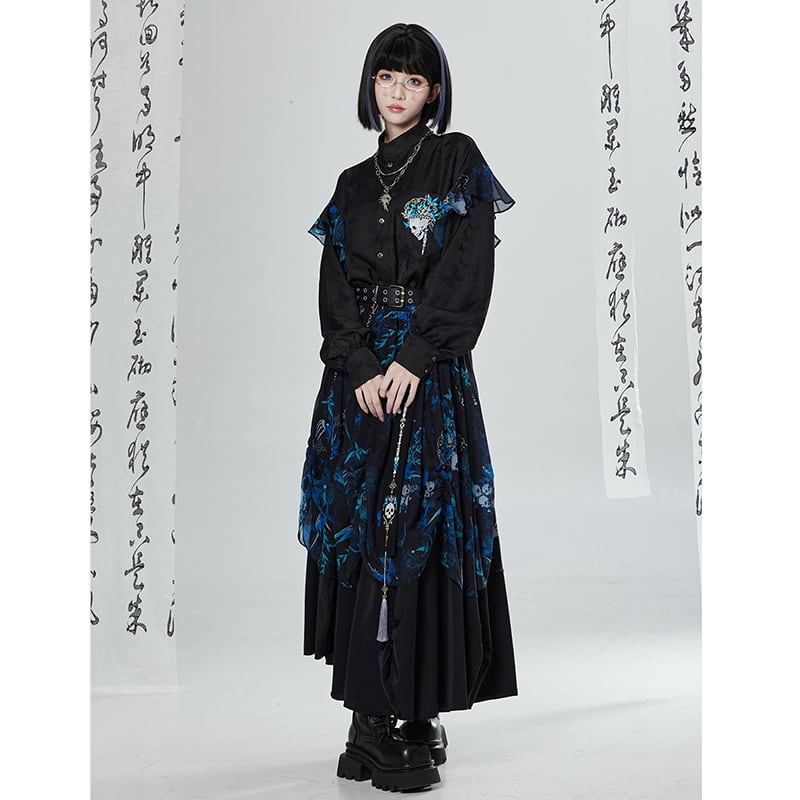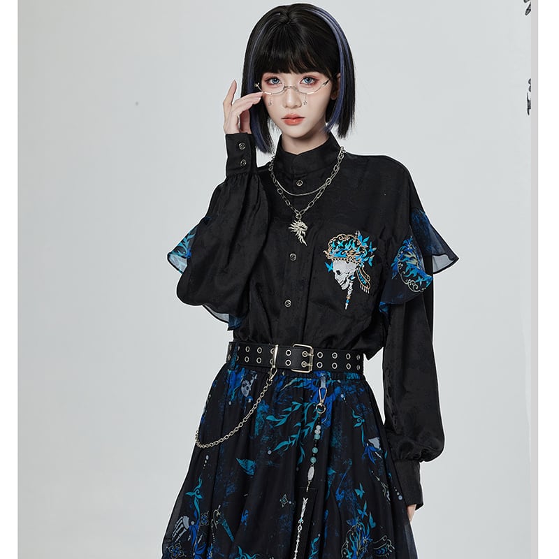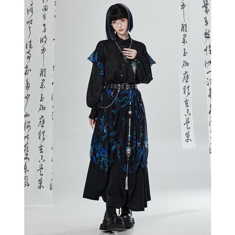 【卿棠---冠骨浮生】★チャイナ風トップス★ 刺繍 シャツ 長袖シャツ ユニセックス ブラック 黒い 個性的
