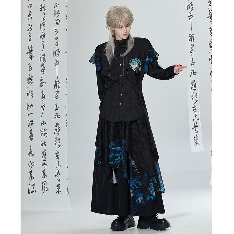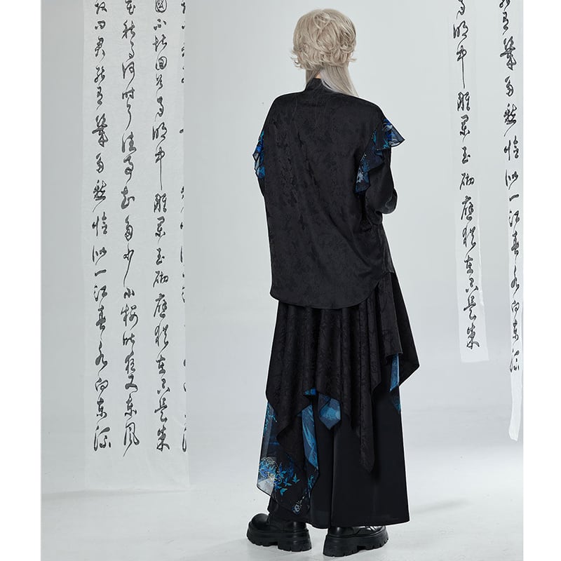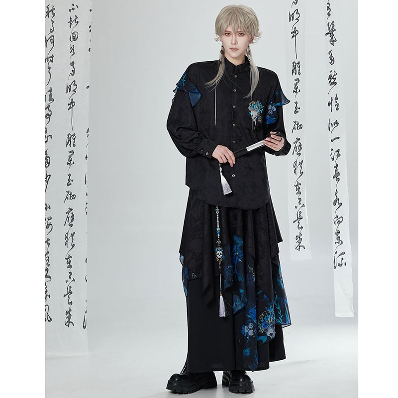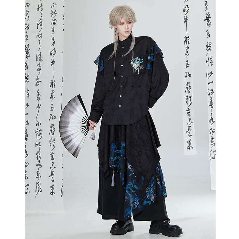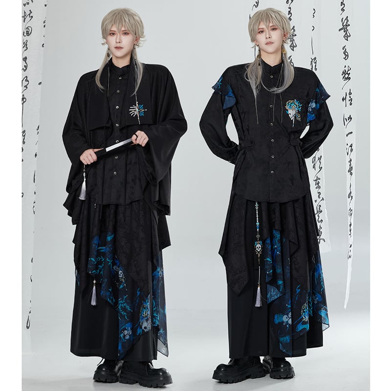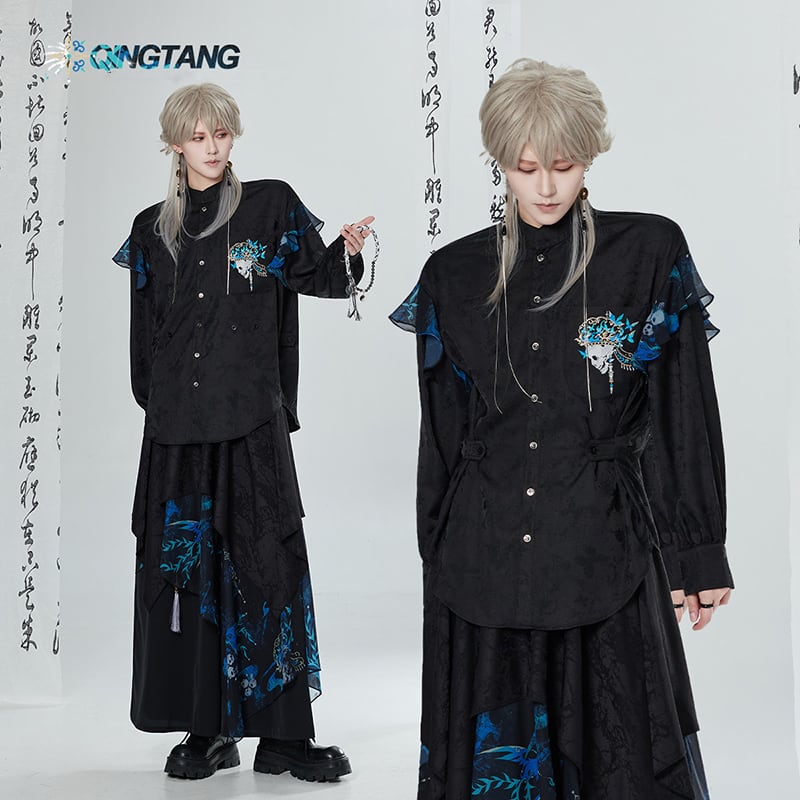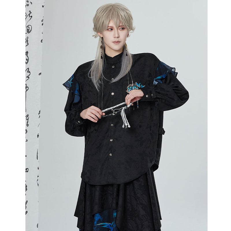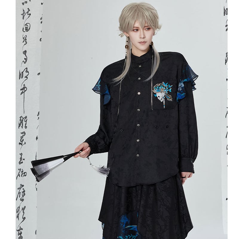 【卿棠---冠骨浮生】★チャイナ風トップス★ 刺繍 シャツ 長袖シャツ ユニセックス ブラック 黒い 個性的