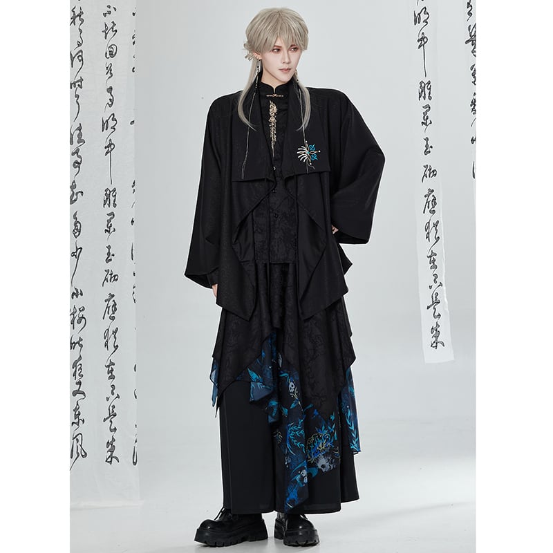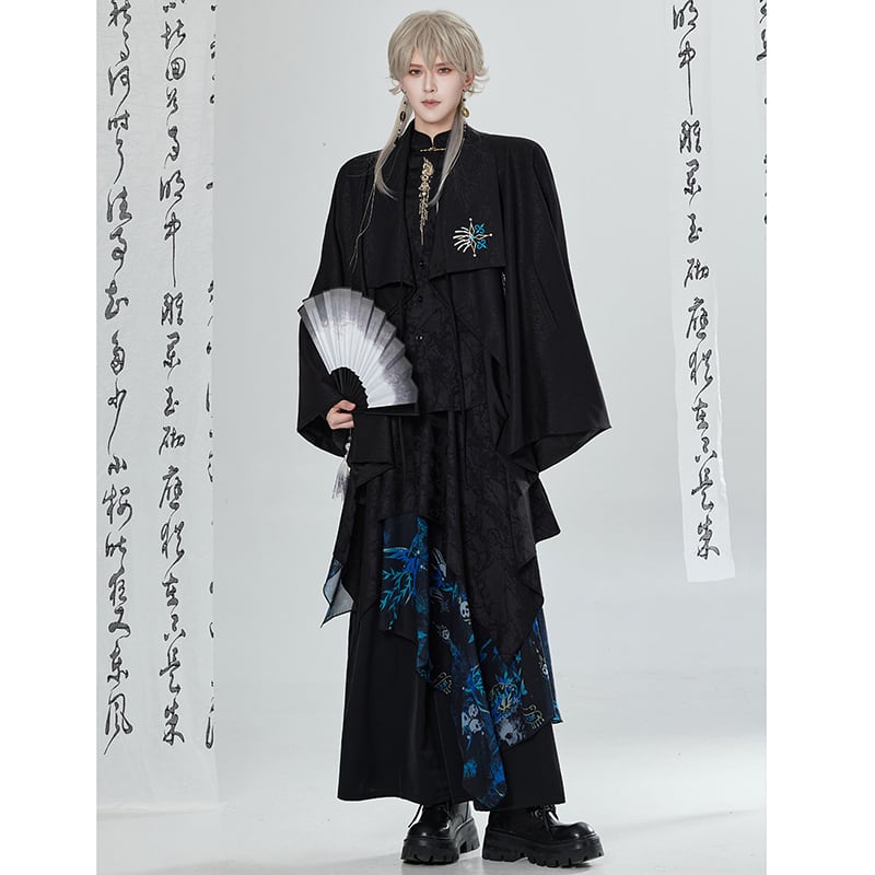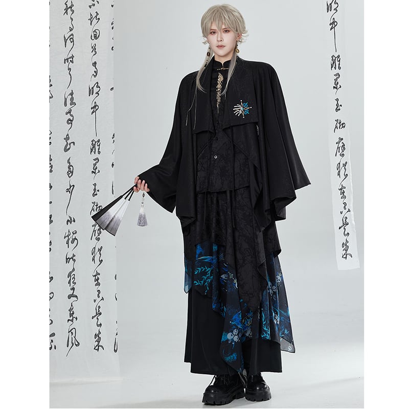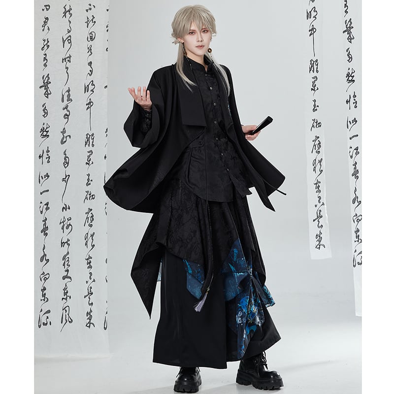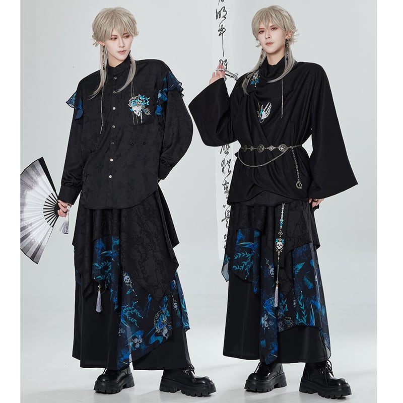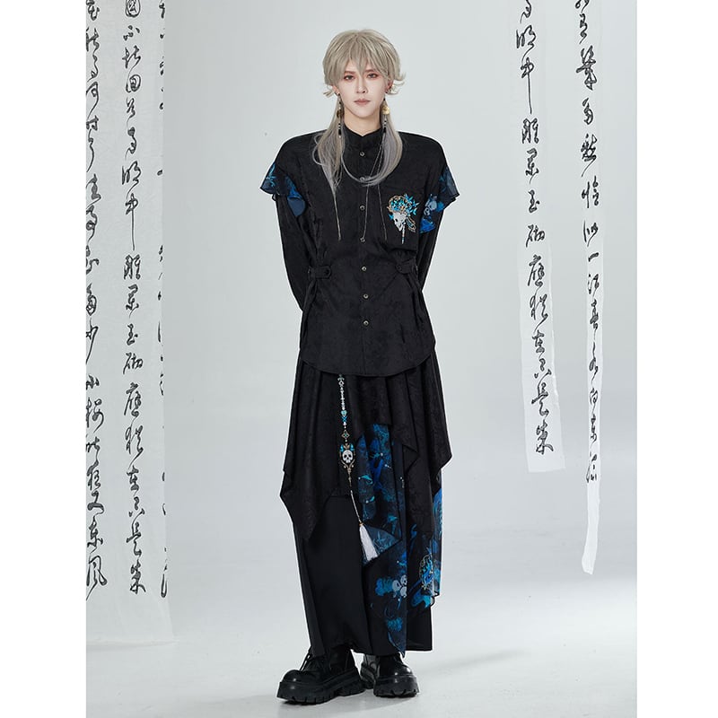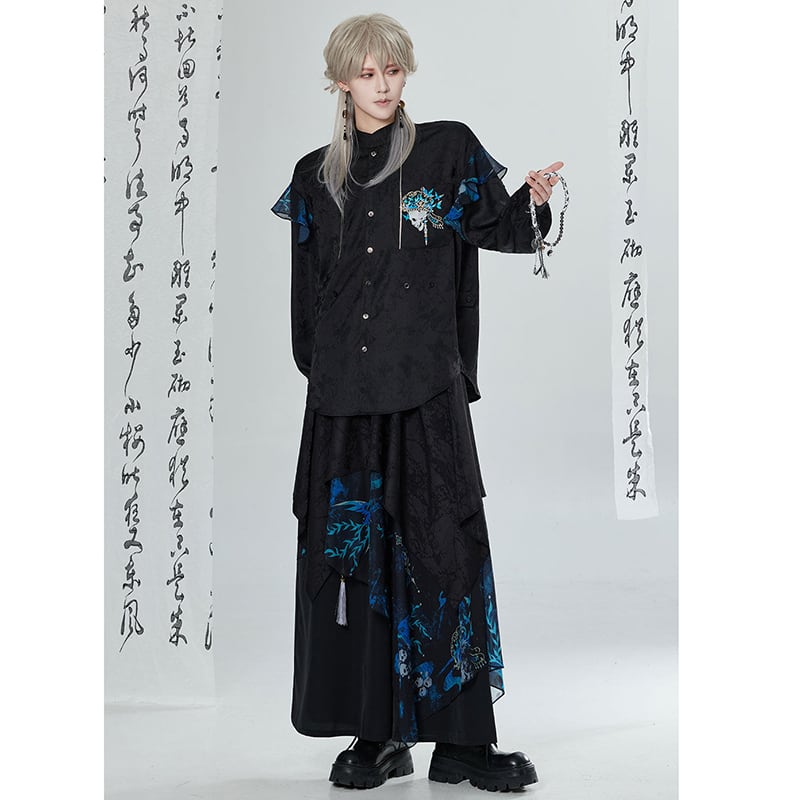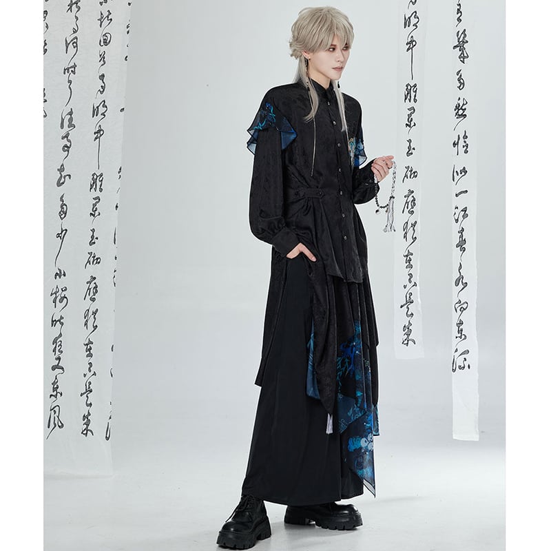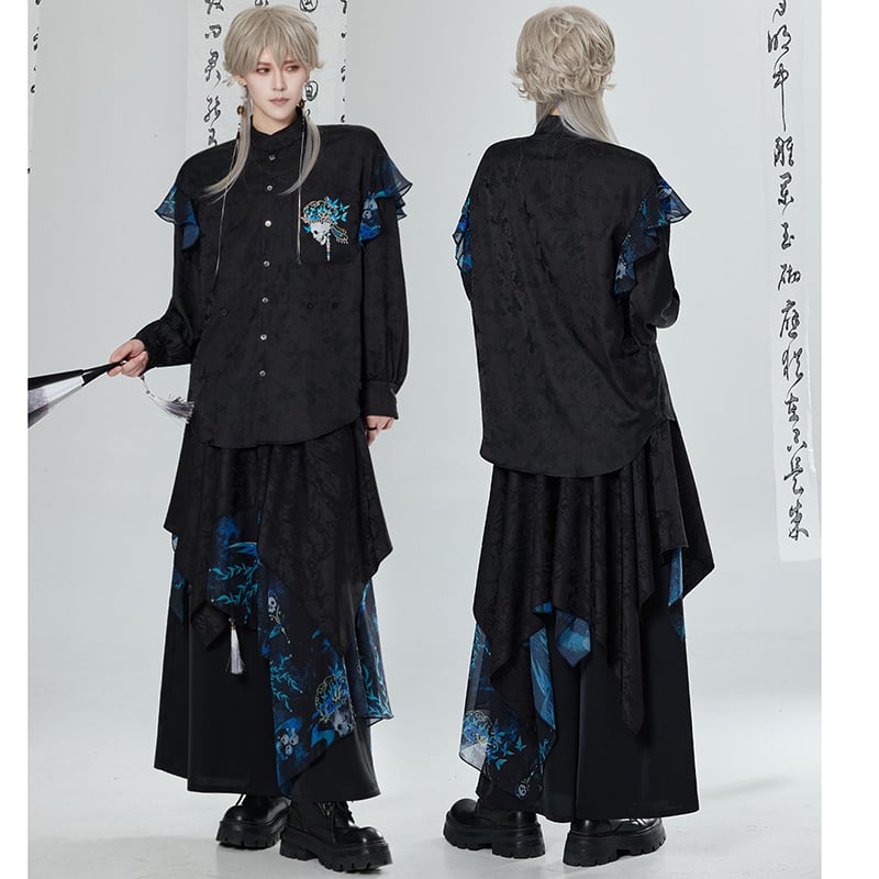 【卿棠---冠骨浮生】★チャイナ風トップス★ 刺繍 シャツ 長袖シャツ ユニセックス ブラック 黒い 個性的