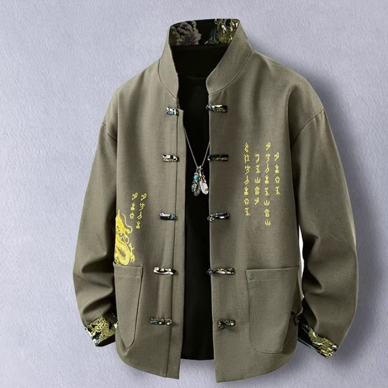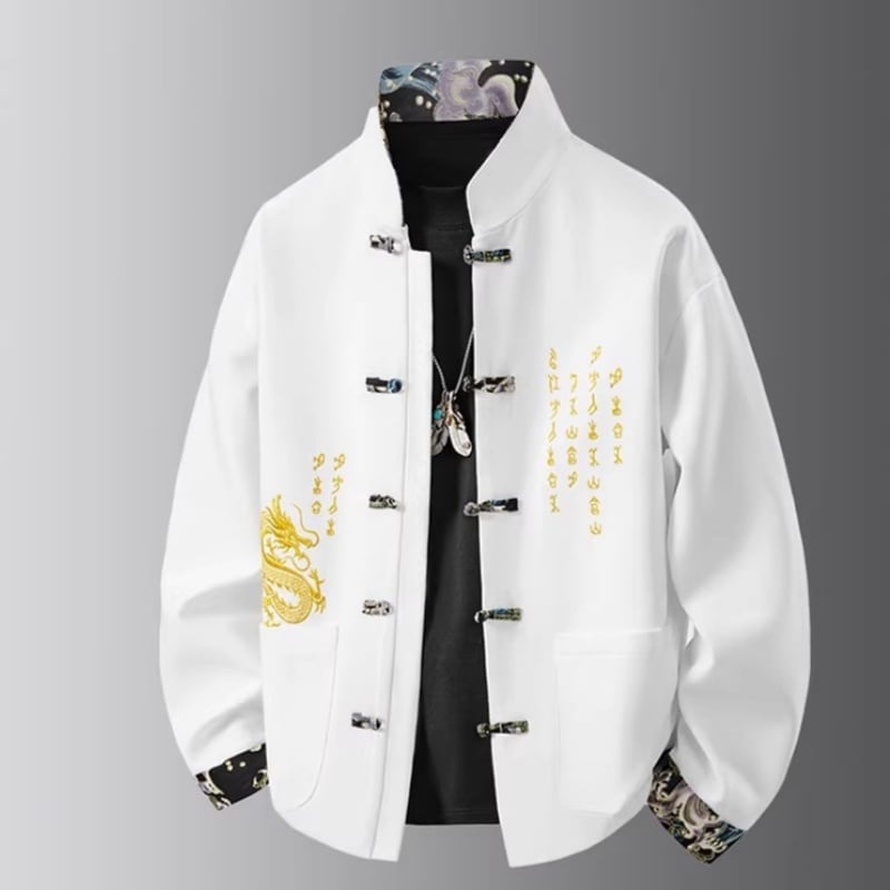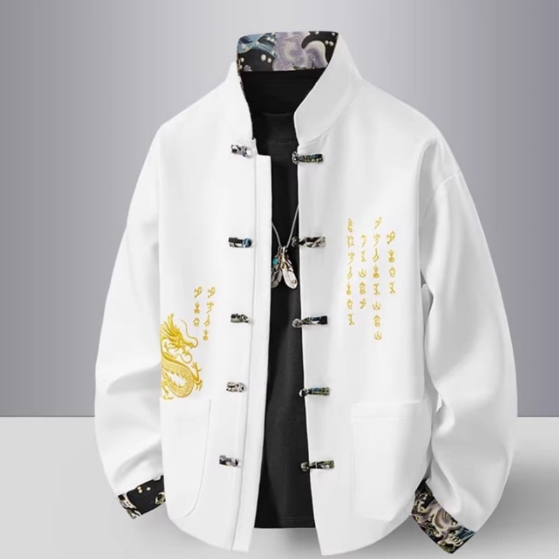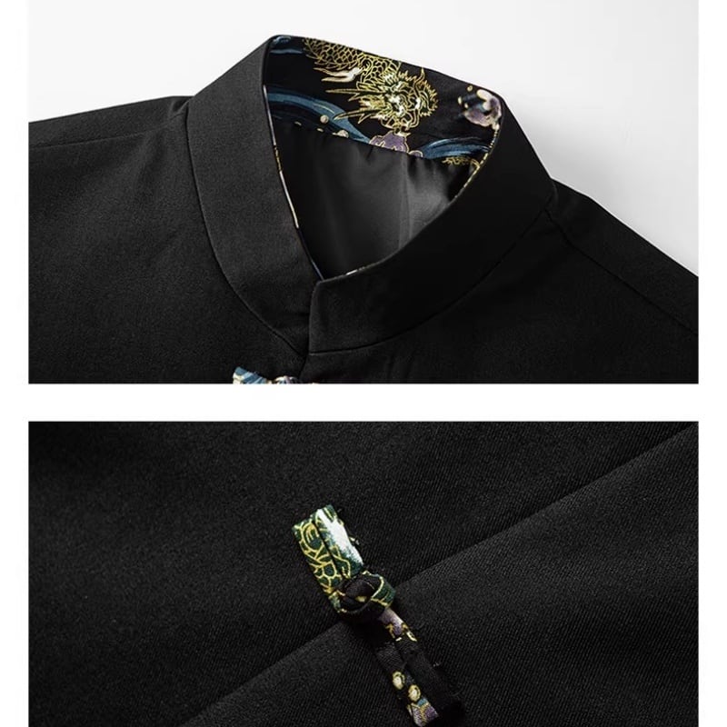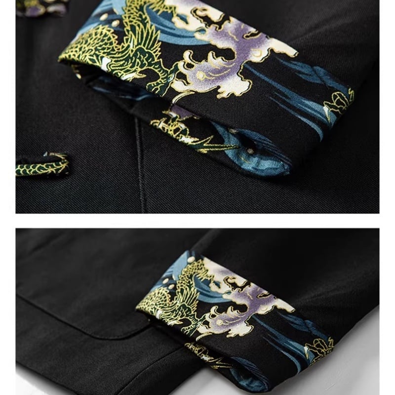 ❤中国風 レトロ 国潮モダン 龍刺繍アウター!【JHUNシリーズ】✿チャイナ風トップス✿ アウター シャツ チャイナ風服 龍 改良唐装 龍柄 中華服 スタンドネック 長袖 ブラック 黒い レッド 赤い