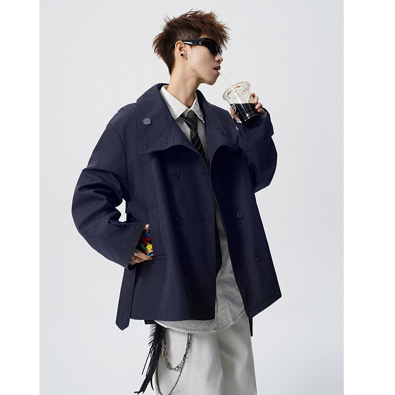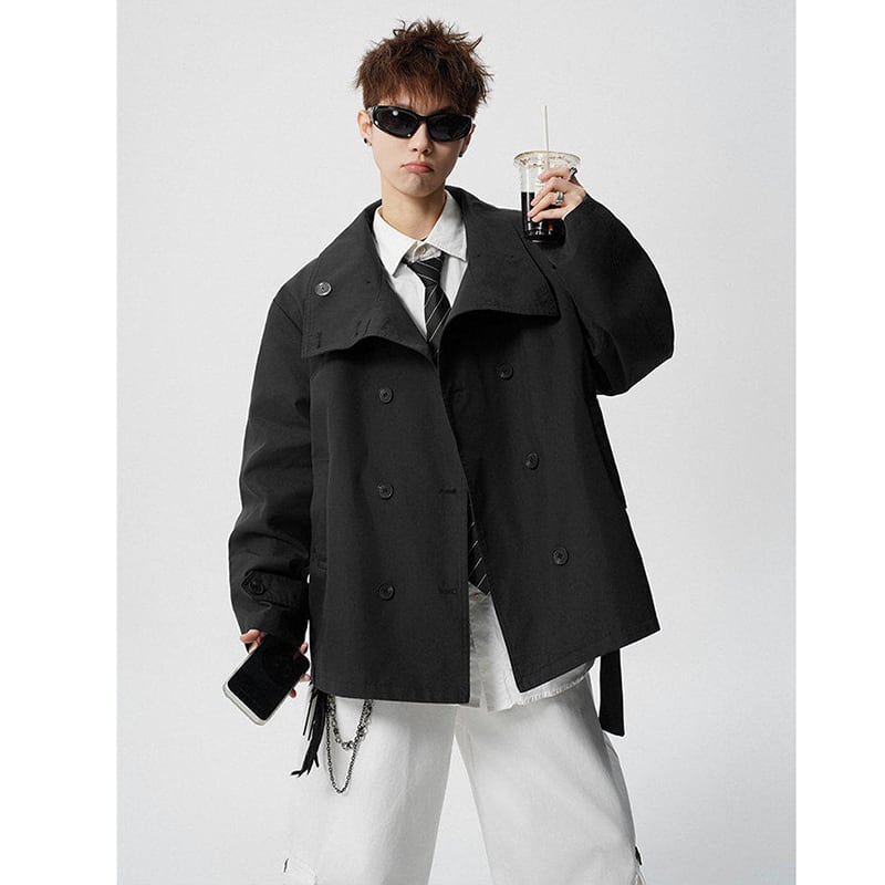 ♥トレンチを短く、かっこよく!【V37シリーズ】★ジャケット★ ユニセックス 2color アウアー 大きいサイズ トレンチコート