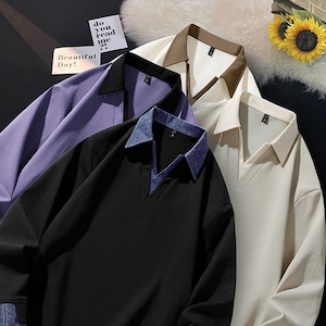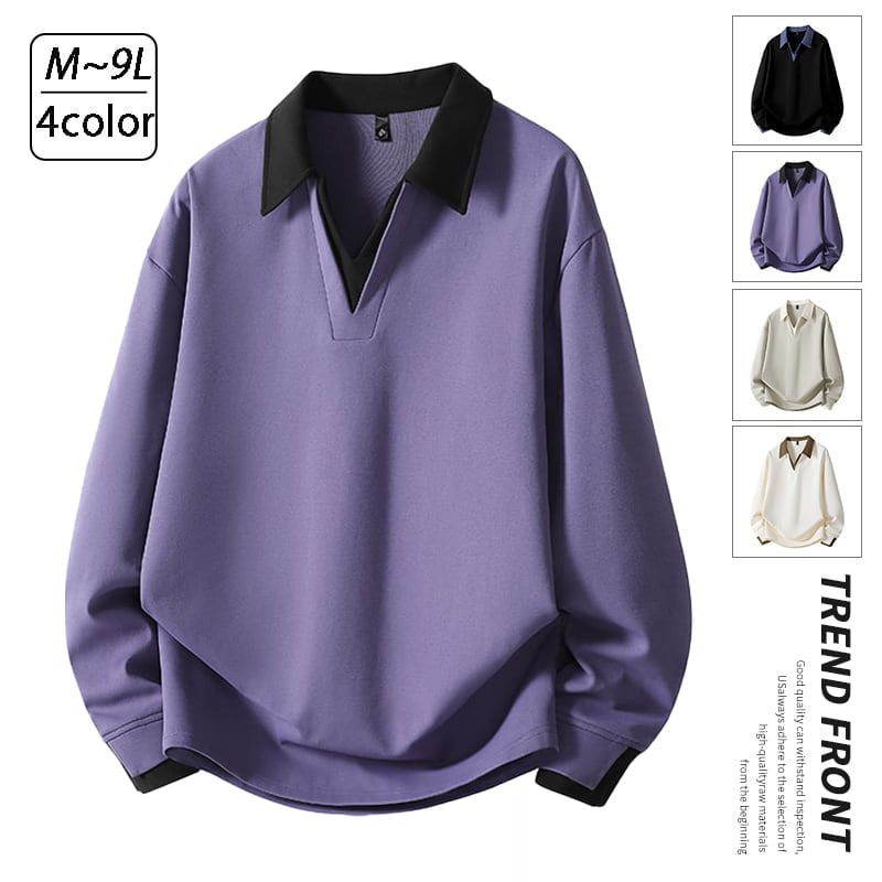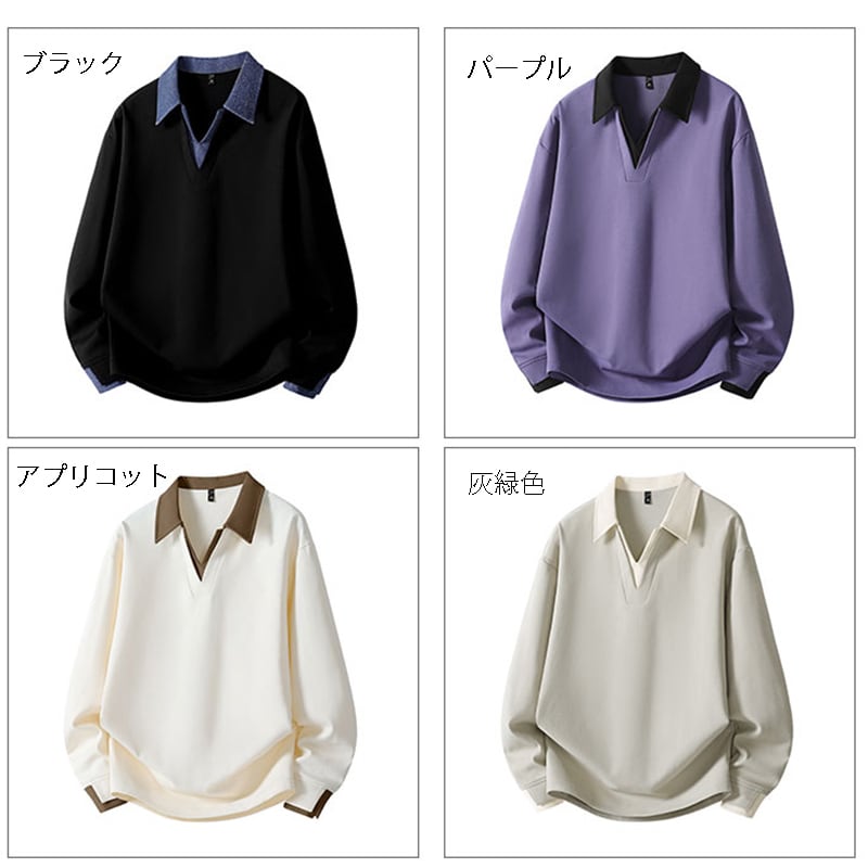 ♥立体感のあるコントラストデザイン!【PURANシリーズ】★POLOシャツ★ ユニセックス 4color トップス メンズ 大きいサイズ 配色 カジュアル