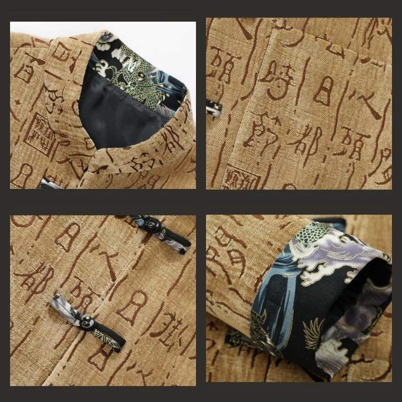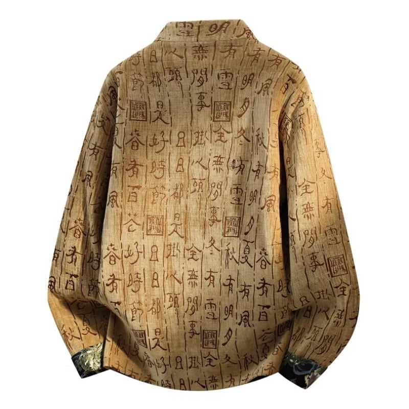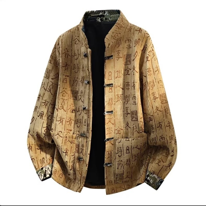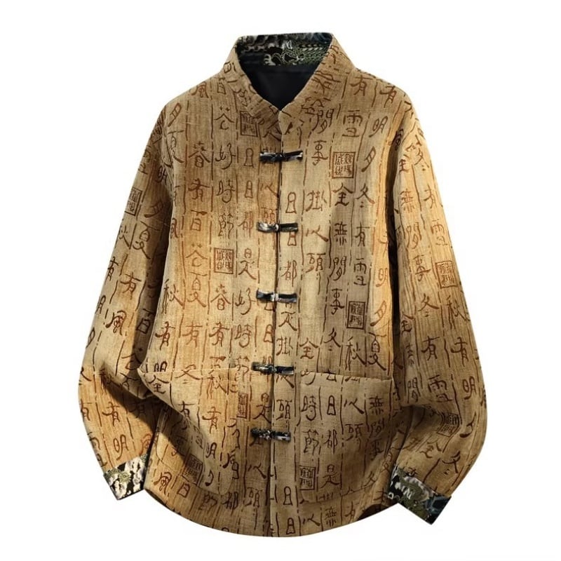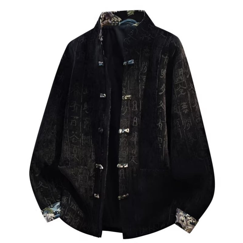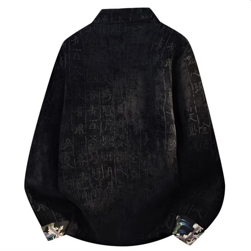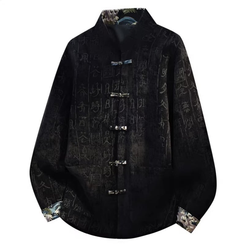 ❤中国風 レトロ 国潮モダン 文字柄付きアウター!【JHUNシリーズ】✿チャイナ風トップス✿ アウター シャツ チャイナ風服 改良唐装 中華服 スタンドネック 長袖 文字柄 ブラック 黒い ブラウン