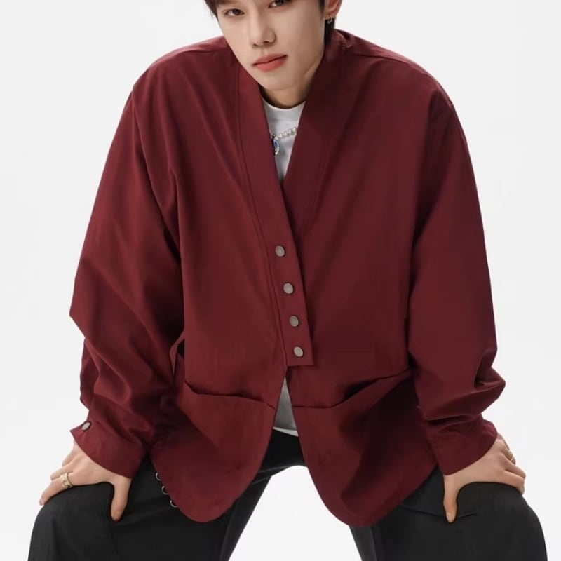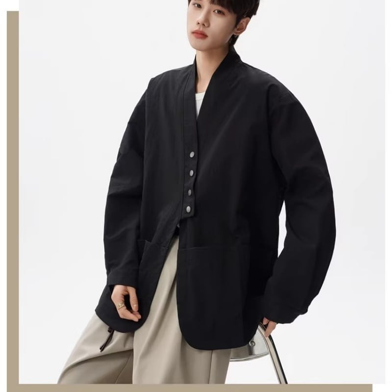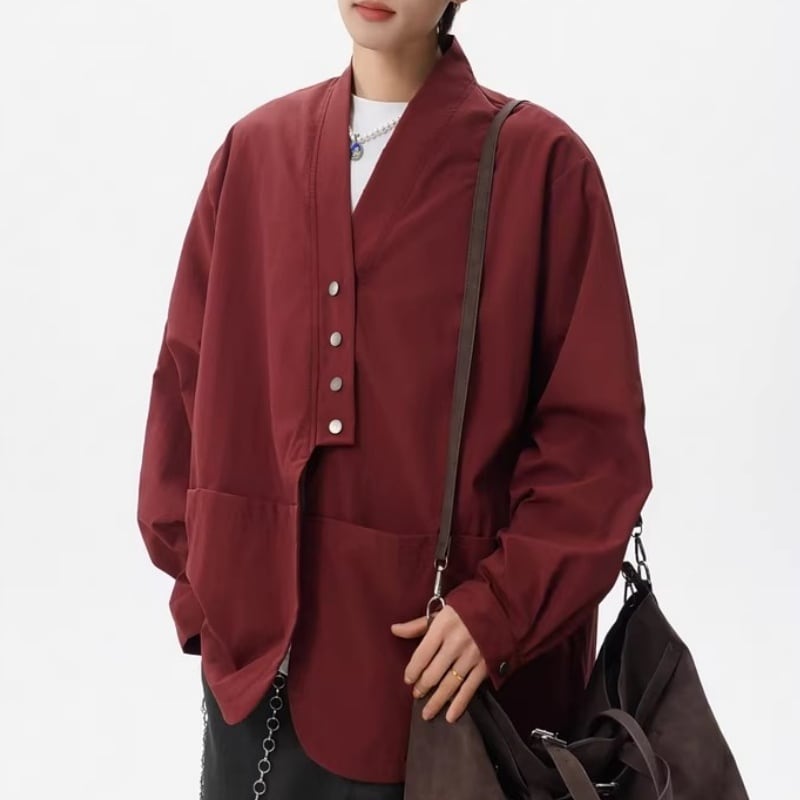 ♥金属ボタン チャイナ風設計感シャツ!【BMOBシリーズ】★チャイナ風トップス★ 4color トップス 金属ボタン シャツ ユニセックス ゆったり
