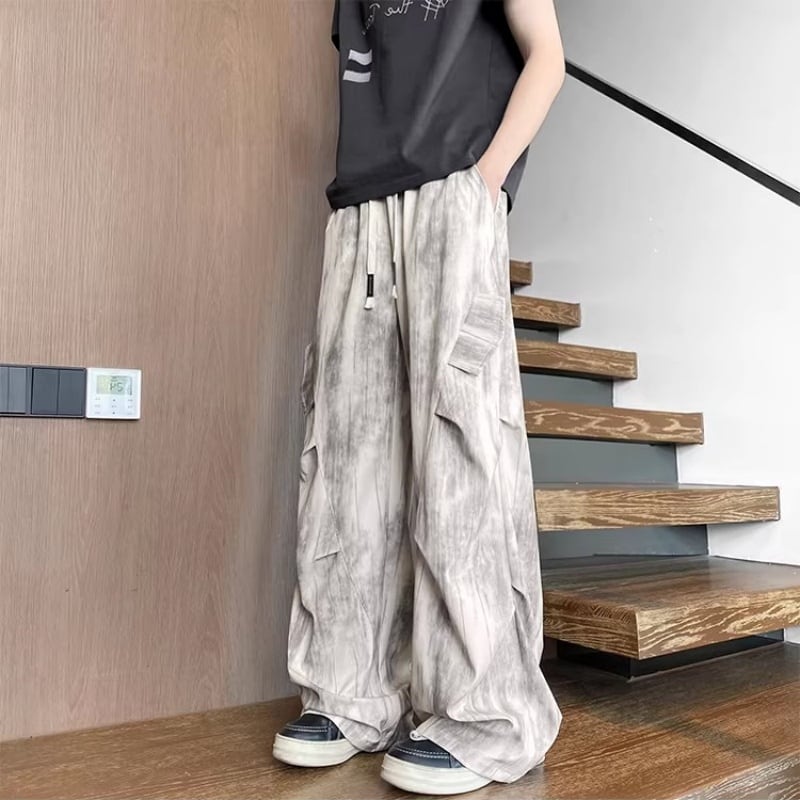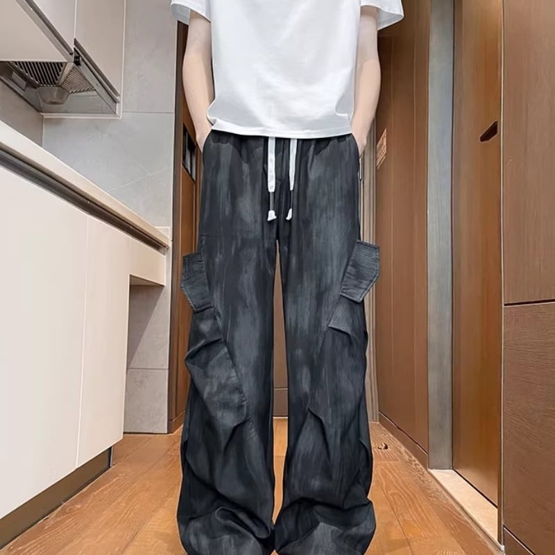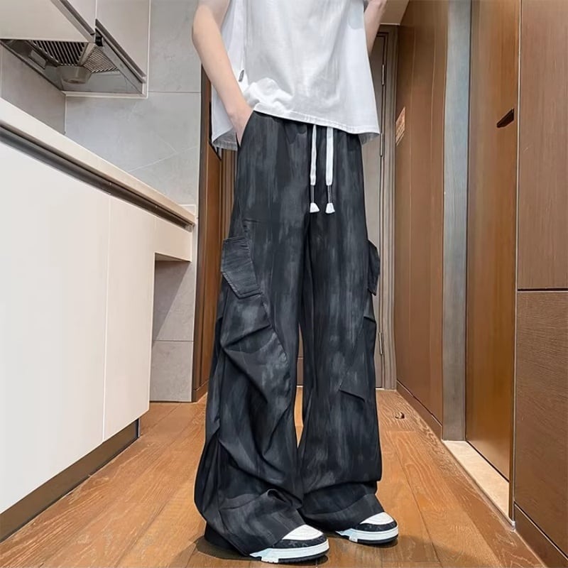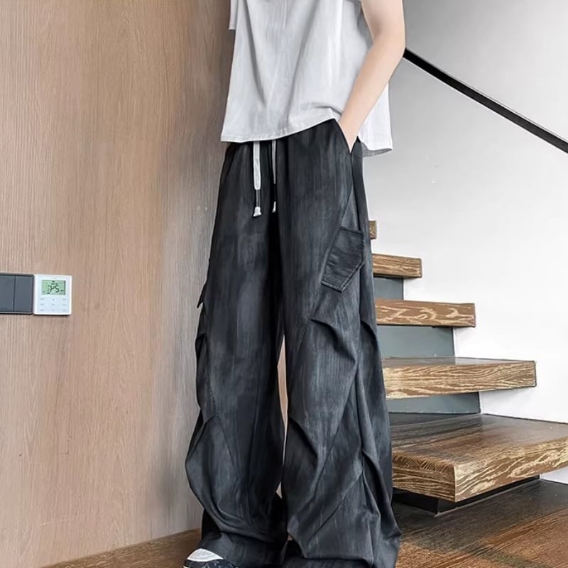 ✿涼感ワイドパンツ | 夏のゆったりスタイル✿【KADISHOUシリーズ】★カジュアルパンツ★ 2color ボトムス ズボン 男女兼用 メンズ 大きいサイズ 5XLまで ブラック 黒
