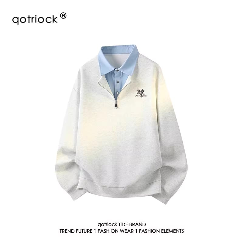 ♥レトロ学園風 ポロ襟フェイクレイヤードシャツ!【qotriockシリーズ】★POLOシャツ★ ユニセックス 3color トップス メンズ 馬 配色 カジュアル