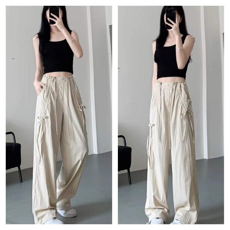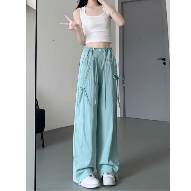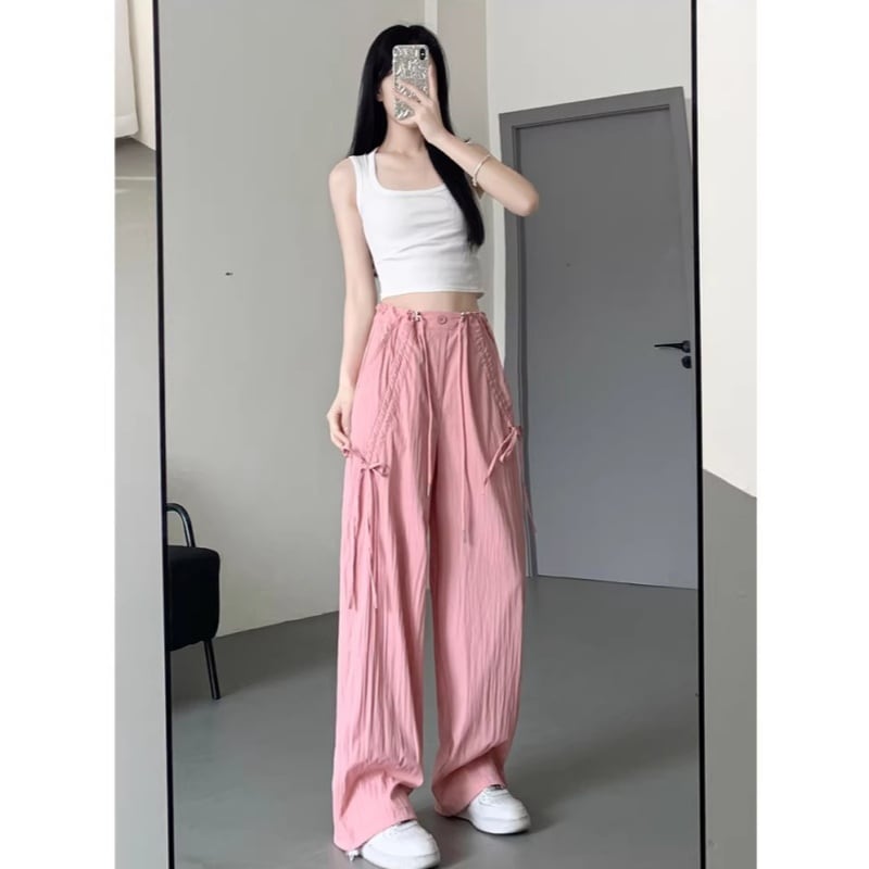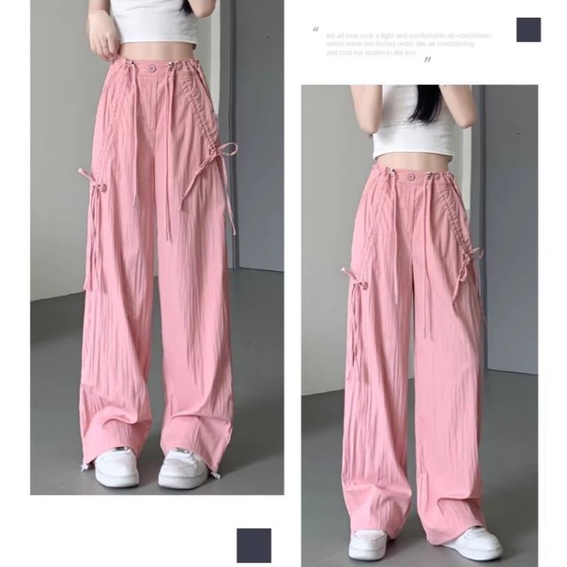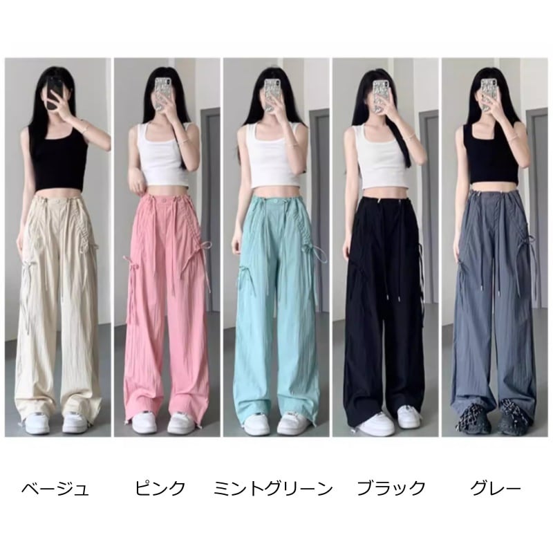 ♥カラフル 5color リボン結び 脚長 ワイドパンツ!【LMYシリーズ】★ズボン★ ユニセックス ボトムス カジュアルパンツ おしゃれ