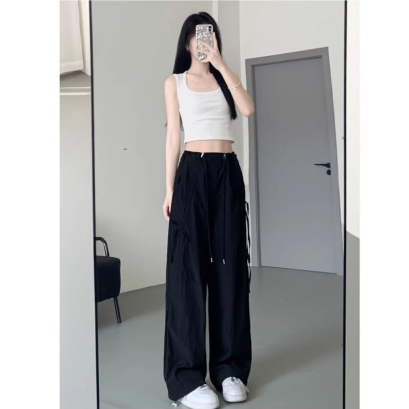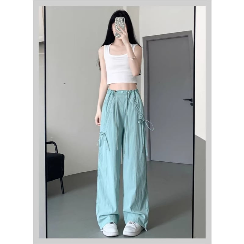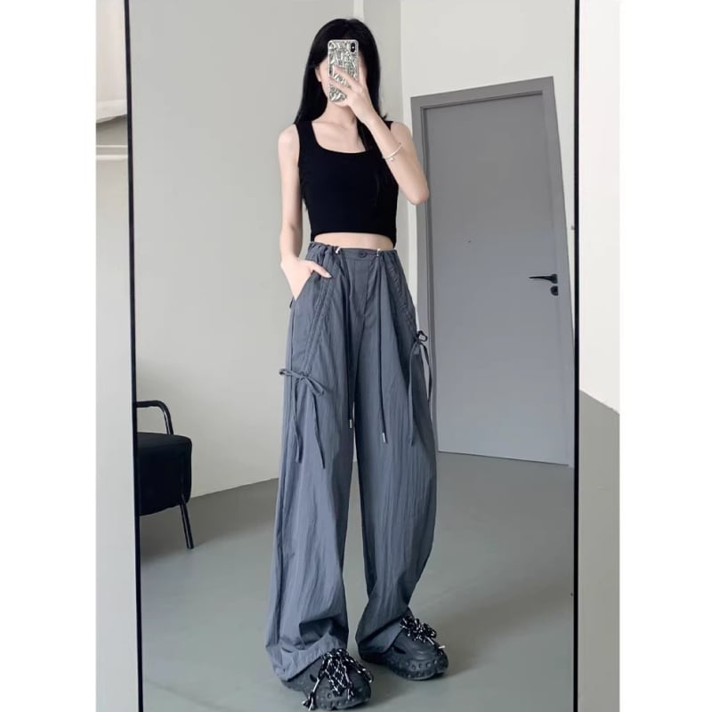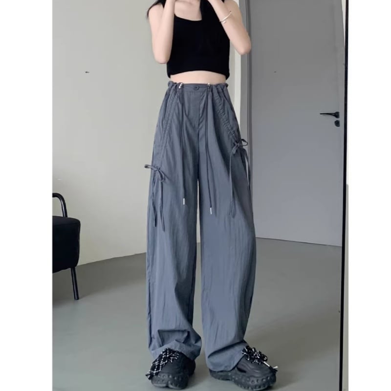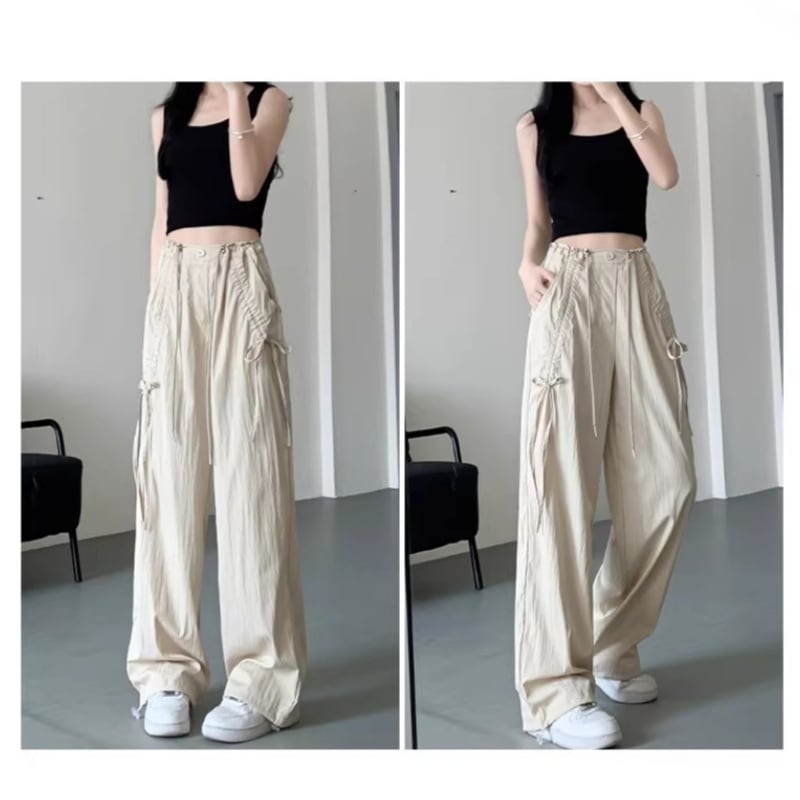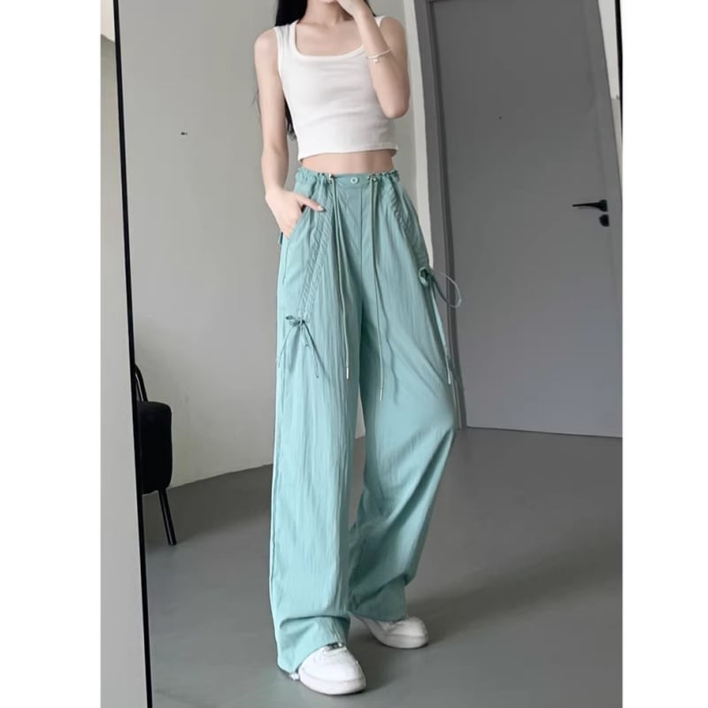 ♥カラフル 5color リボン結び 脚長 ワイドパンツ!【LMYシリーズ】★ズボン★ ユニセックス ボトムス カジュアルパンツ おしゃれ