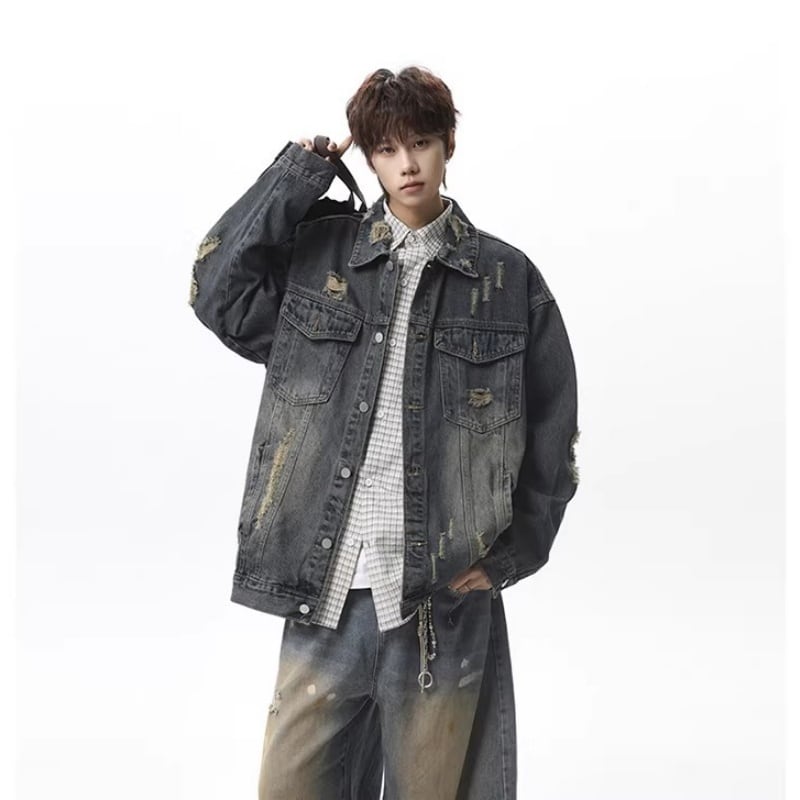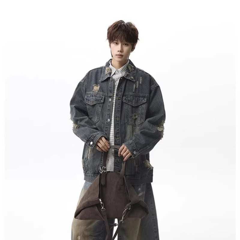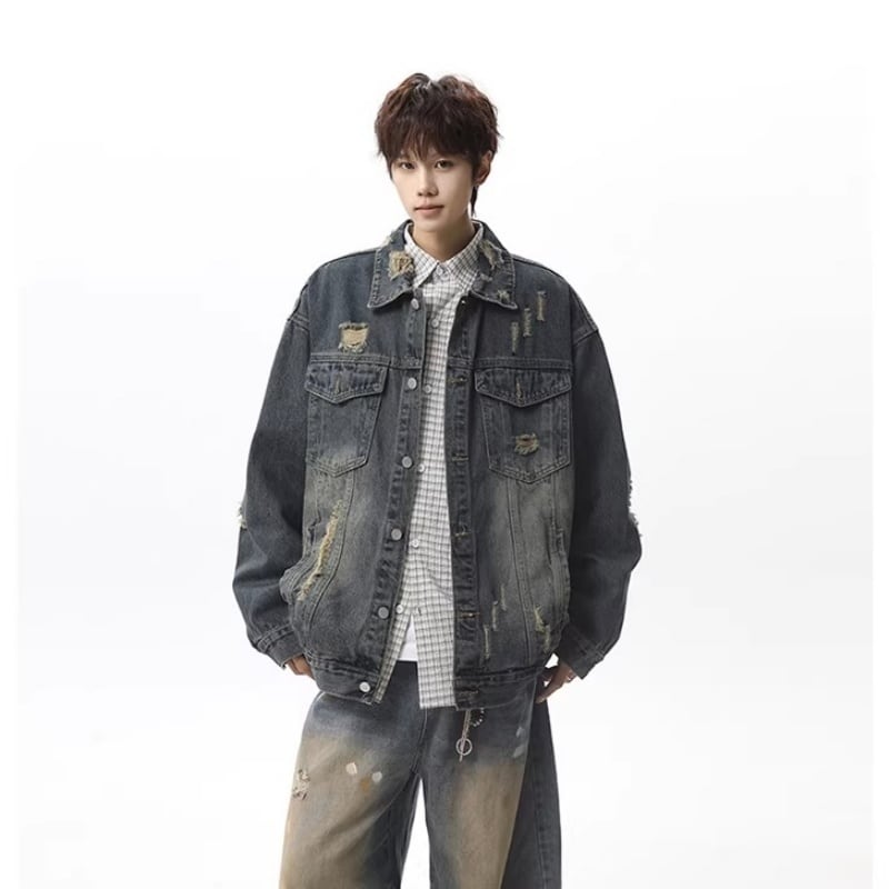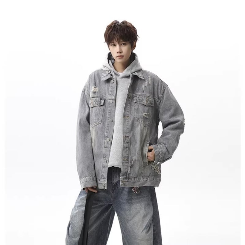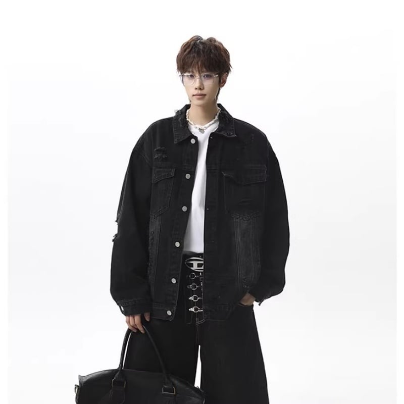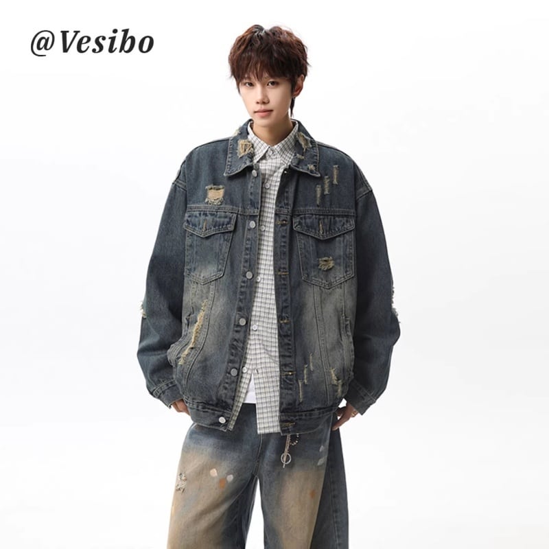 ✿レトロモダンなデザイン 春のデニムジャケット!【vesiboシリーズ】★ジャケット★ ユニセックス 3color アウター デニムジャケット レトロ ダメージ加工