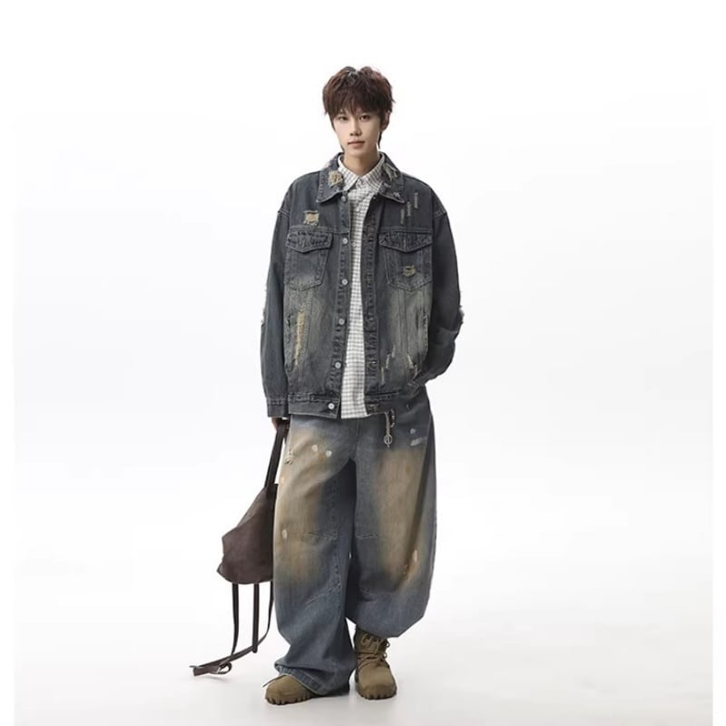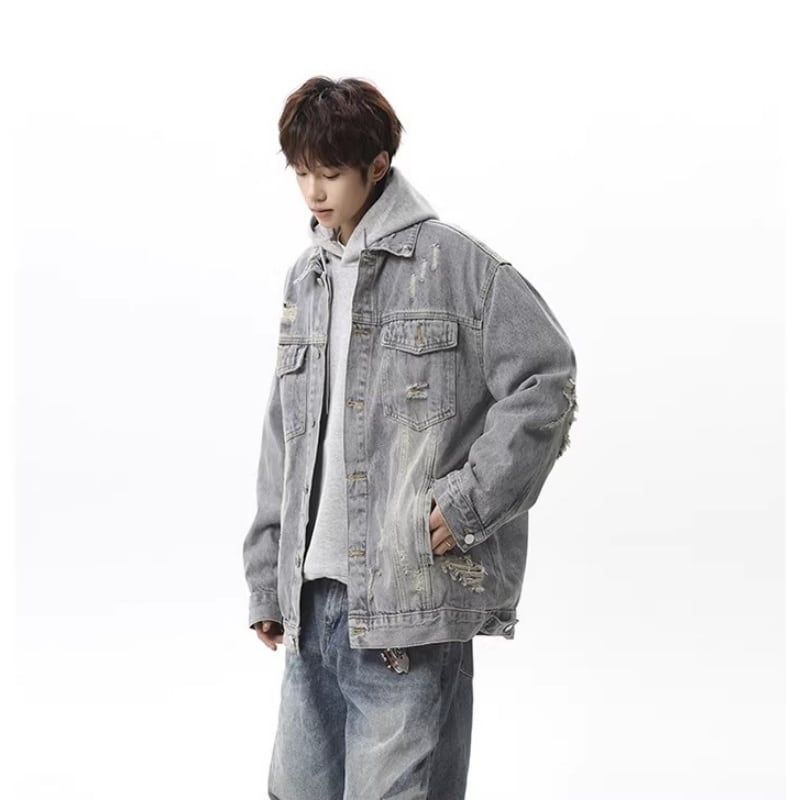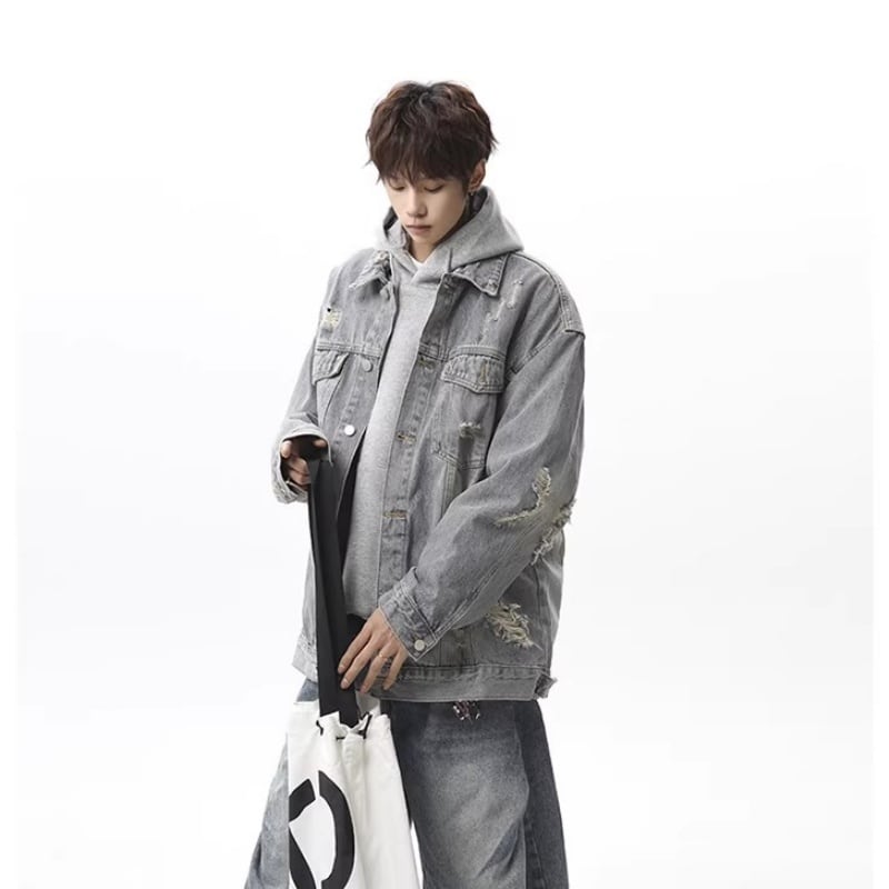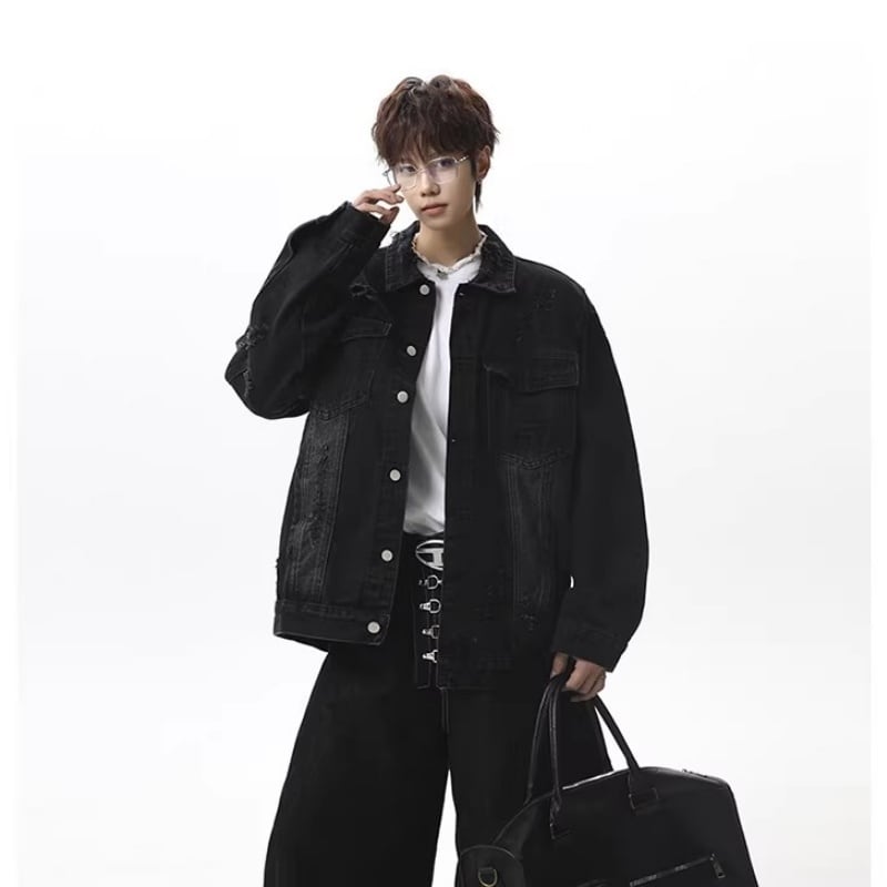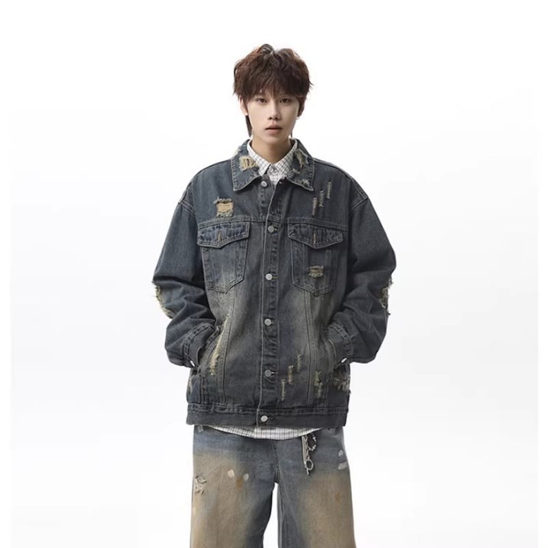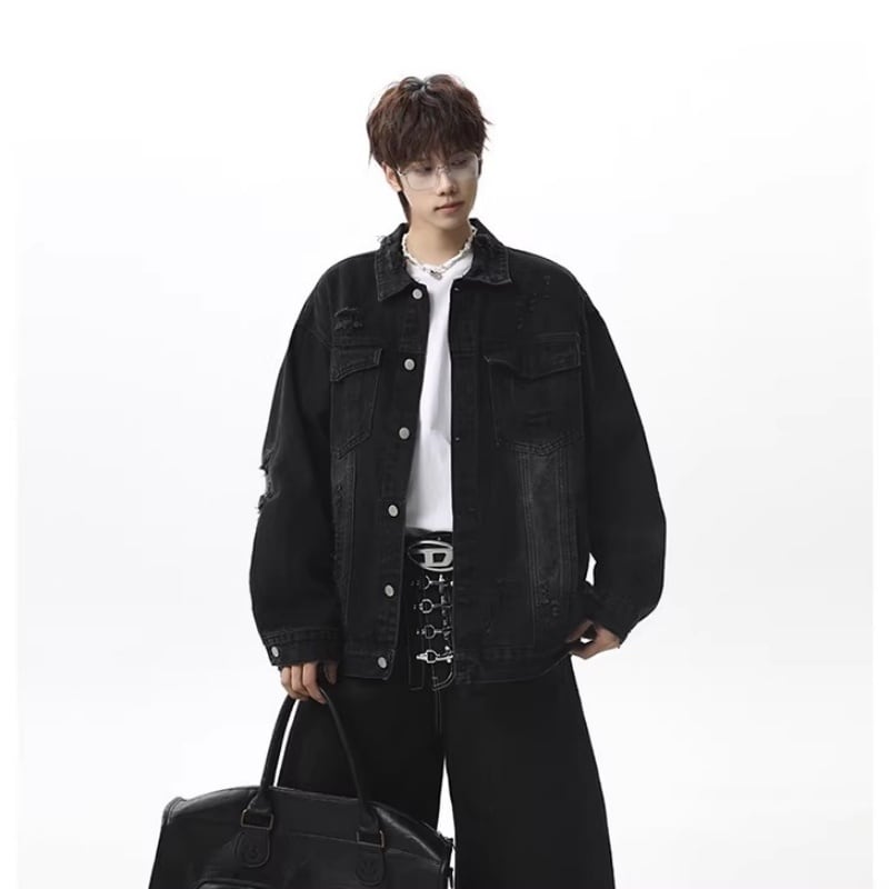 ✿レトロモダンなデザイン 春のデニムジャケット!【vesiboシリーズ】★ジャケット★ ユニセックス 3color アウター デニムジャケット レトロ ダメージ加工