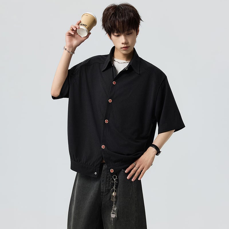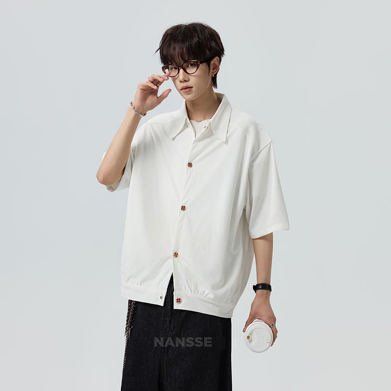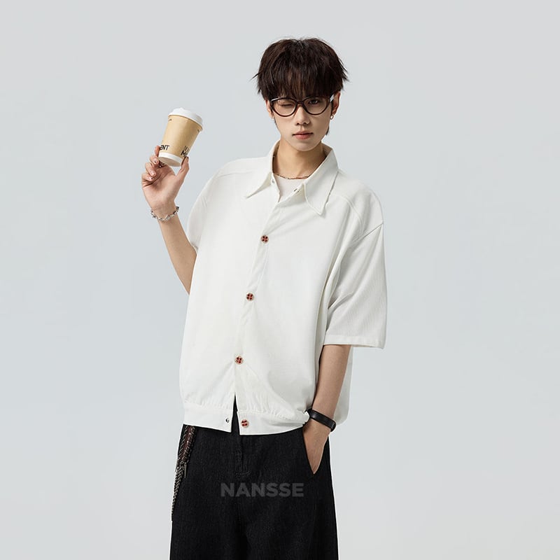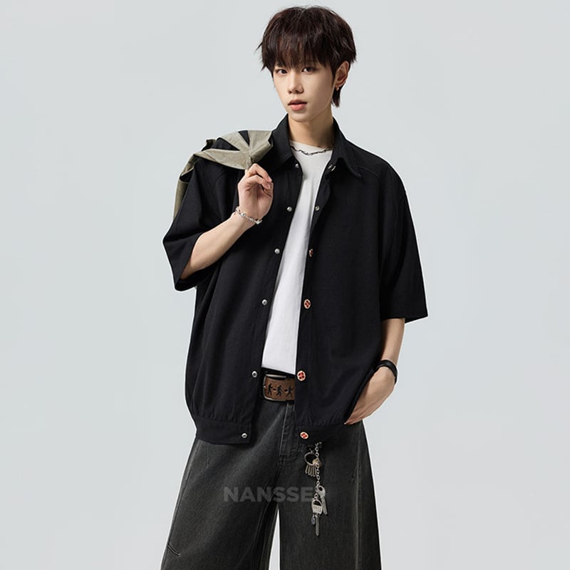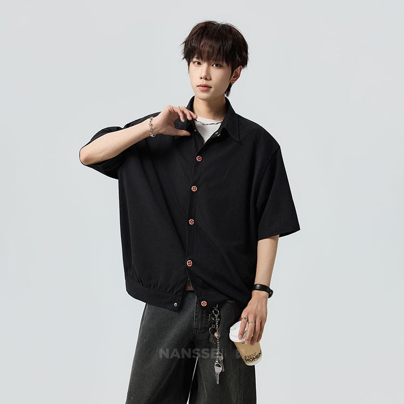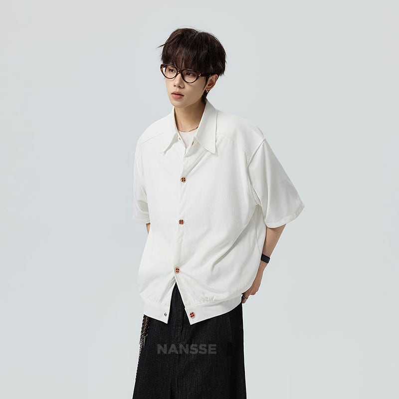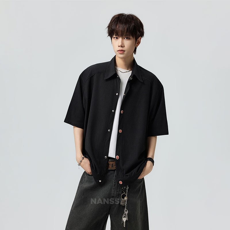 ♥シンプルは、最強のスタイル!【V37シリーズ】★シャツ★ 2color ユニセックス トップス 半袖 カジュアル 可愛いボタン