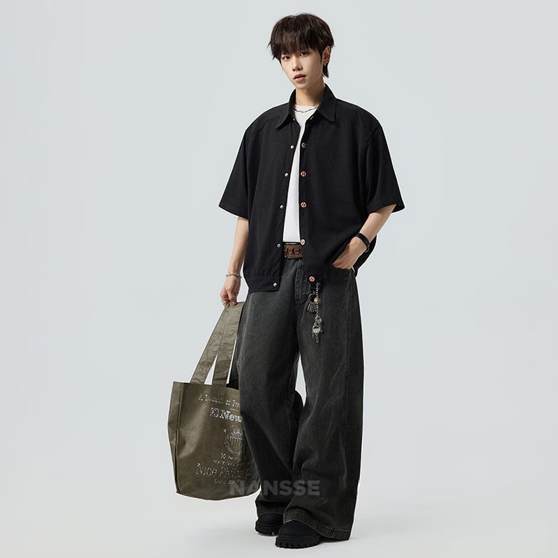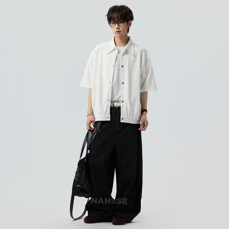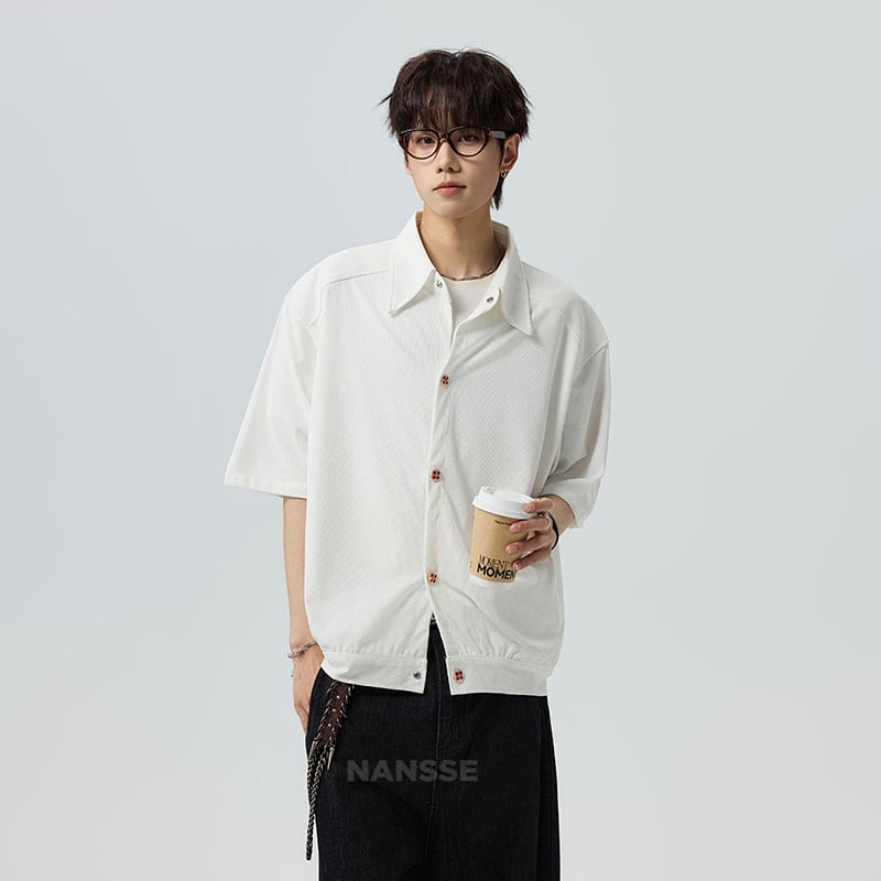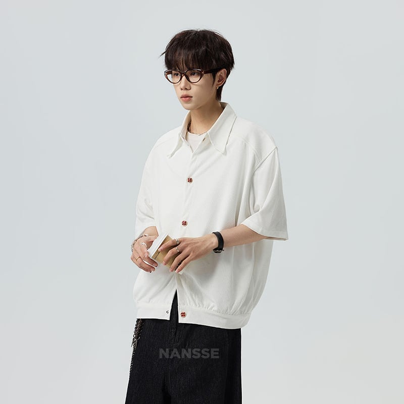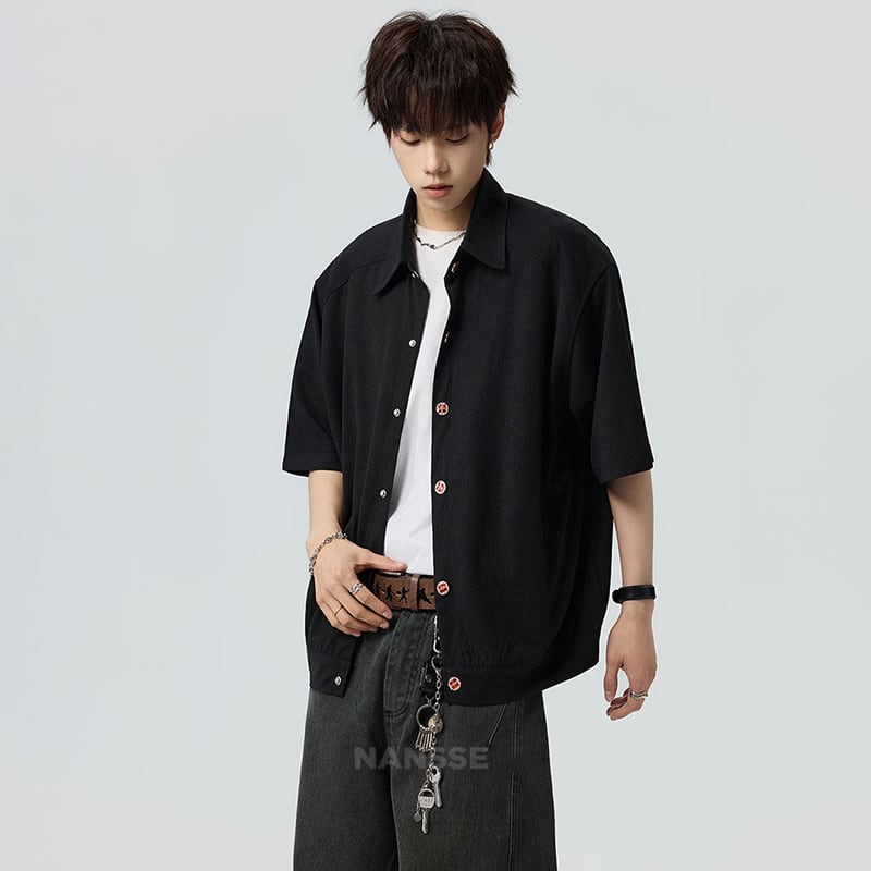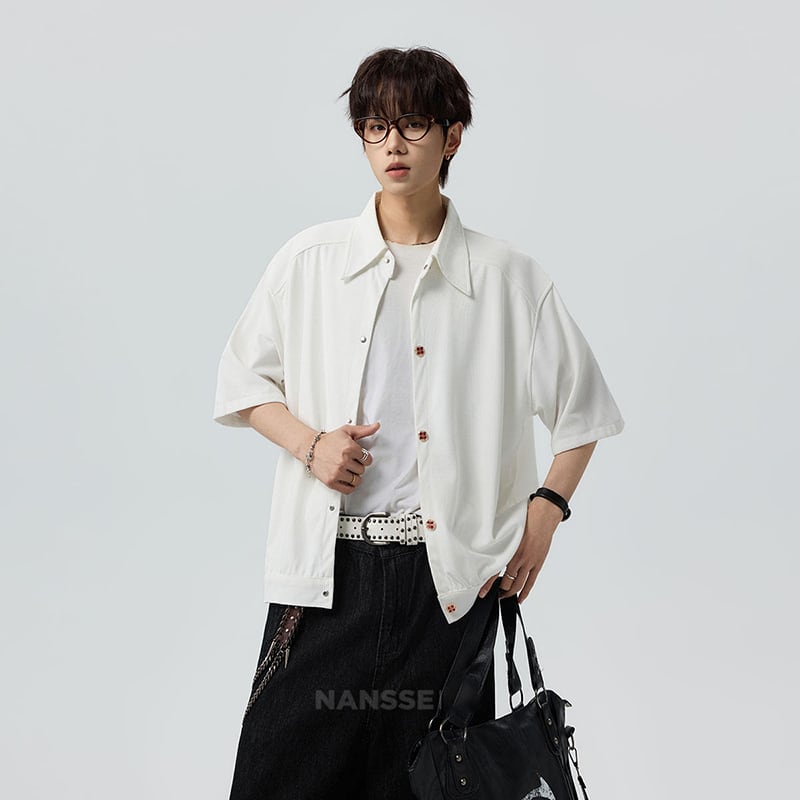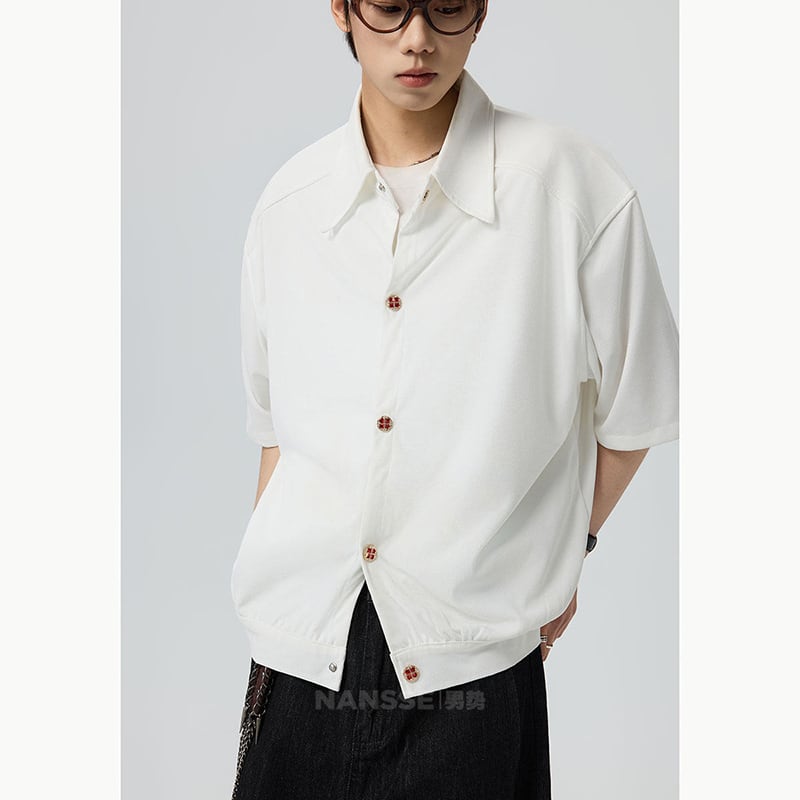 ♥シンプルは、最強のスタイル!【V37シリーズ】★シャツ★ 2color ユニセックス トップス 半袖 カジュアル 可愛いボタン