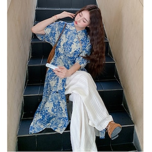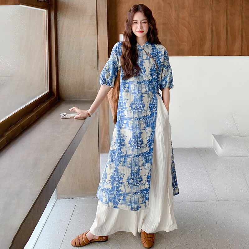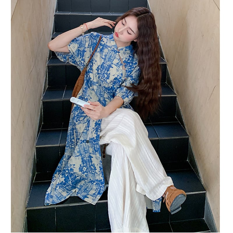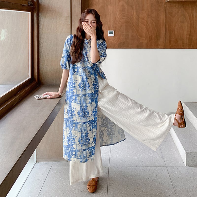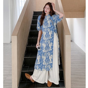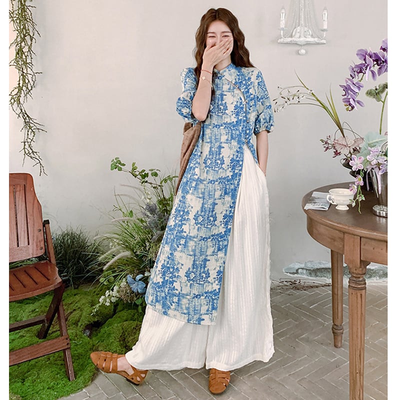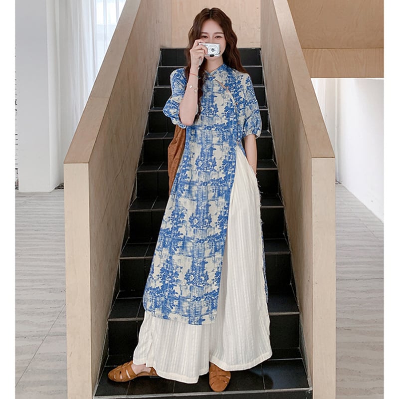 ♥伝統とトレンド、この一着に!【MuseGlowシリーズ】★チャイナ風セットアップ★ ワンピース+ズボン 2点セット レディース 花柄