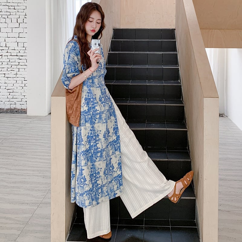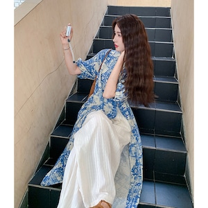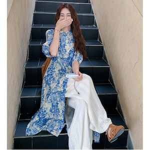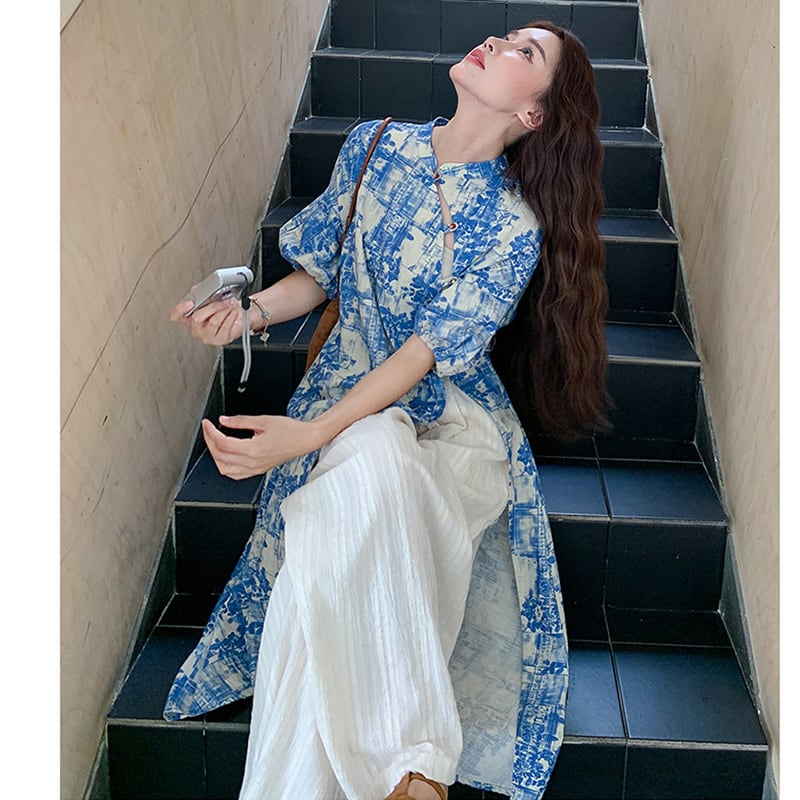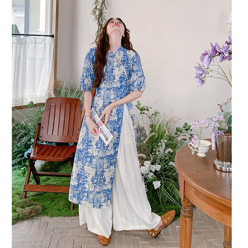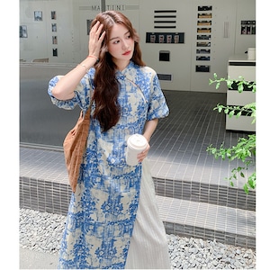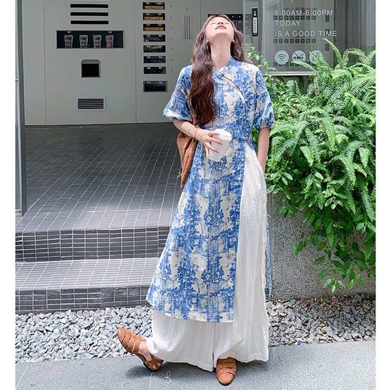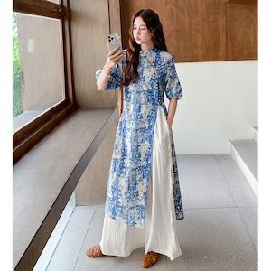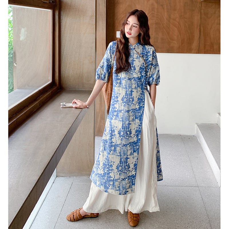 ♥伝統とトレンド、この一着に!【MuseGlowシリーズ】★チャイナ風セットアップ★ ワンピース+ズボン 2点セット レディース 花柄