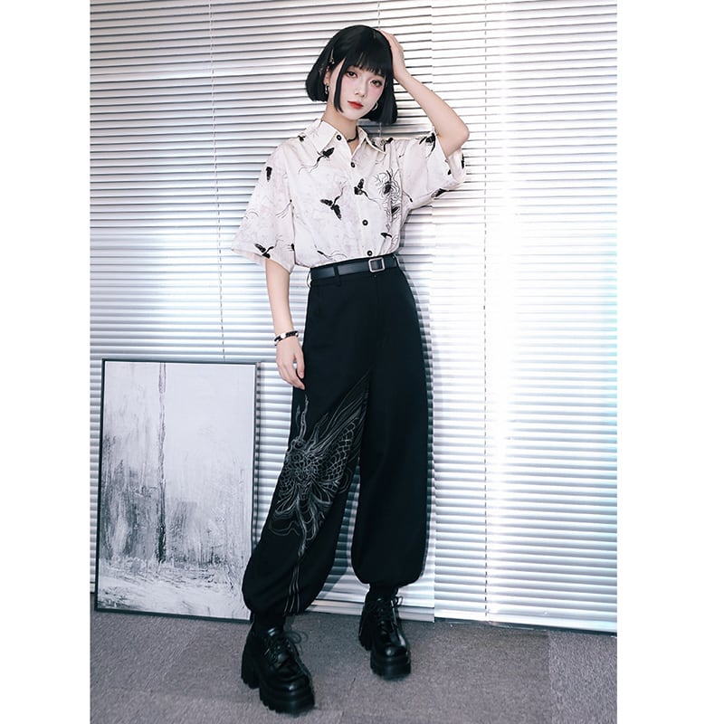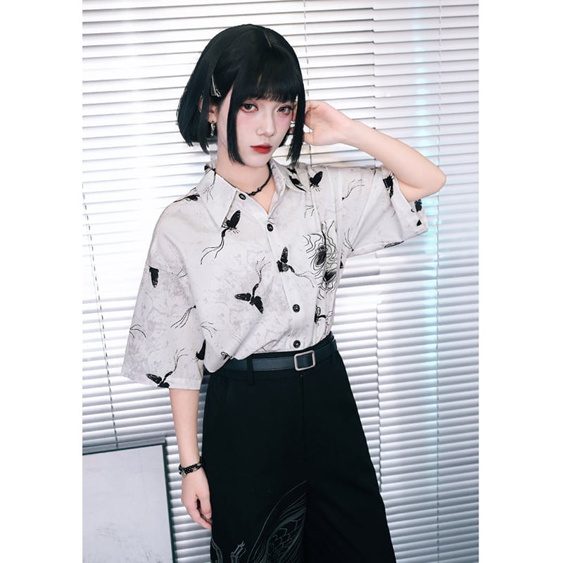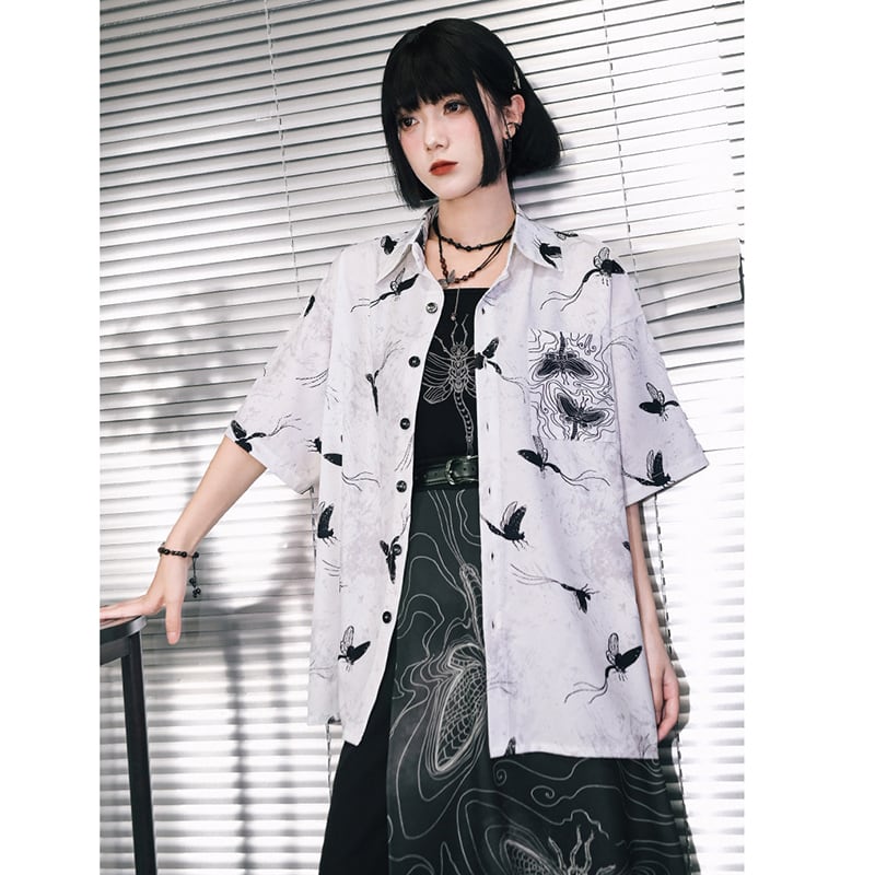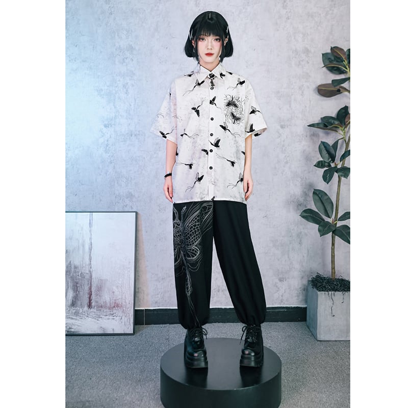 【古怪舍---短暫永恆シリーズ】★チャイナ風トップス★ シャツ 半袖 花柄 オリジナル プリント レトロ 個性的