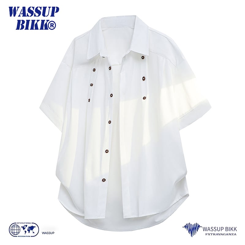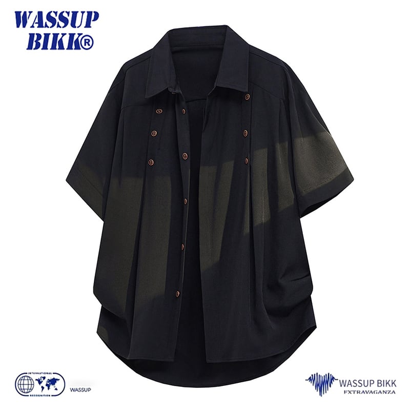♥デザイン性と機能性を両立した、夏の新定番!【WSシリーズ】★チャイナ風トップス★ ユニセックス 3color シャツ 半袖 デザイン性有り 黒 白 赤