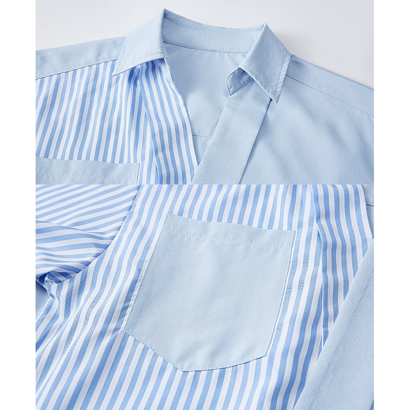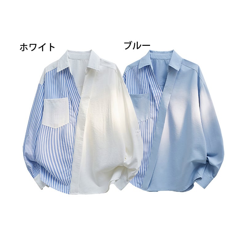 ♥長袖から七分袖になれる!【WSシリーズ】★シャツ★ ユニセックス 2color トップス Vネック 縦縞 縞模様 切り替え