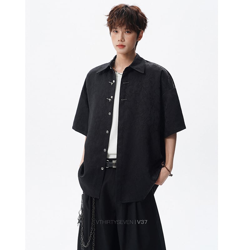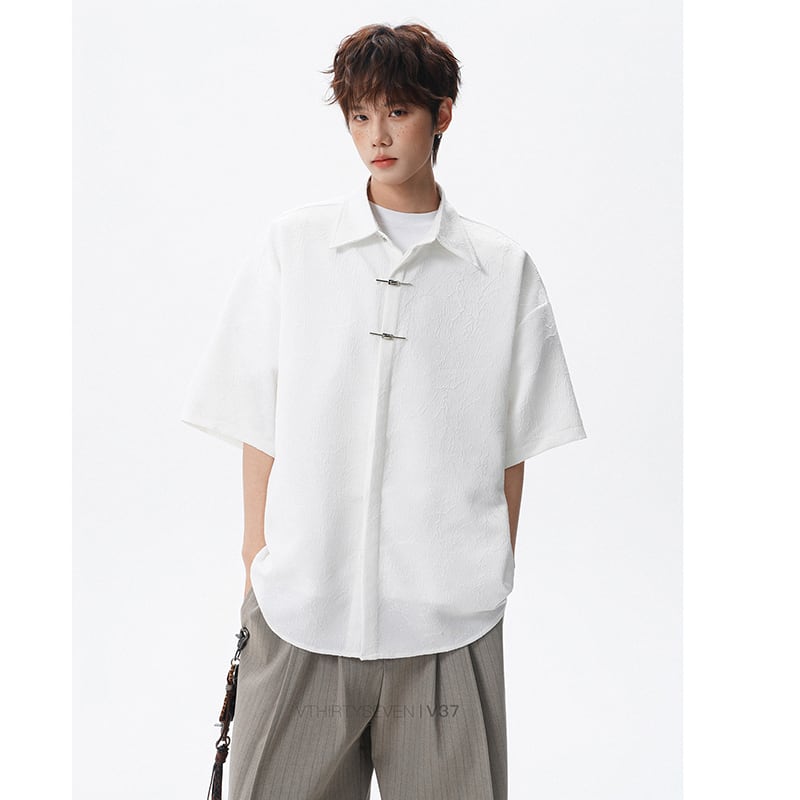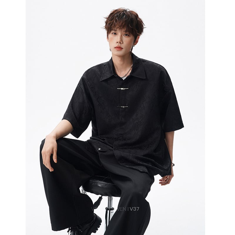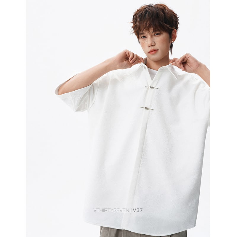 ♥金属ボタンシャツ!【WSシリーズ】★チャイナ風トップス★ ユニセックス 2color トップス シャツ 半袖 カジュアル