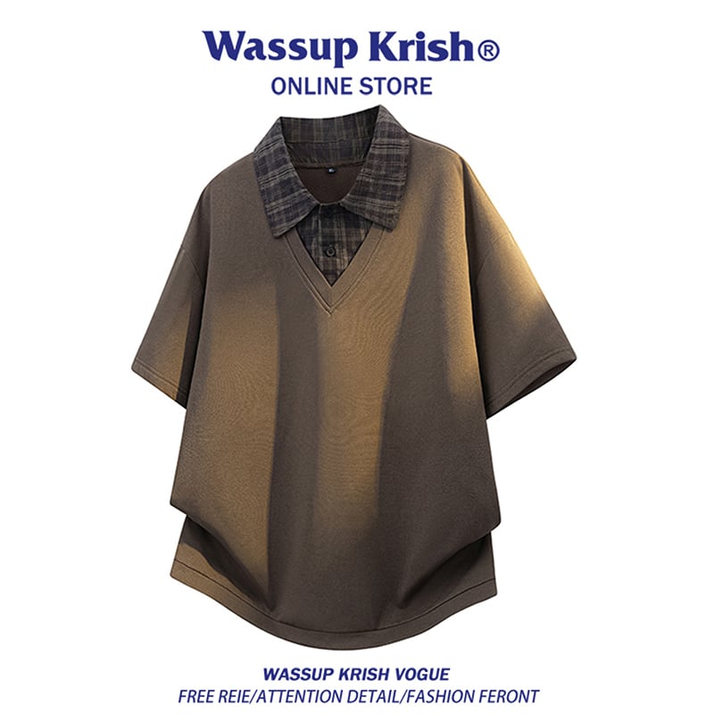 ♥半袖フェイクレイヤードPOLO!【WSシリーズ】★POLOシャツ★ 4color ユニセックス トップス 半袖 チェック柄 カジュアル