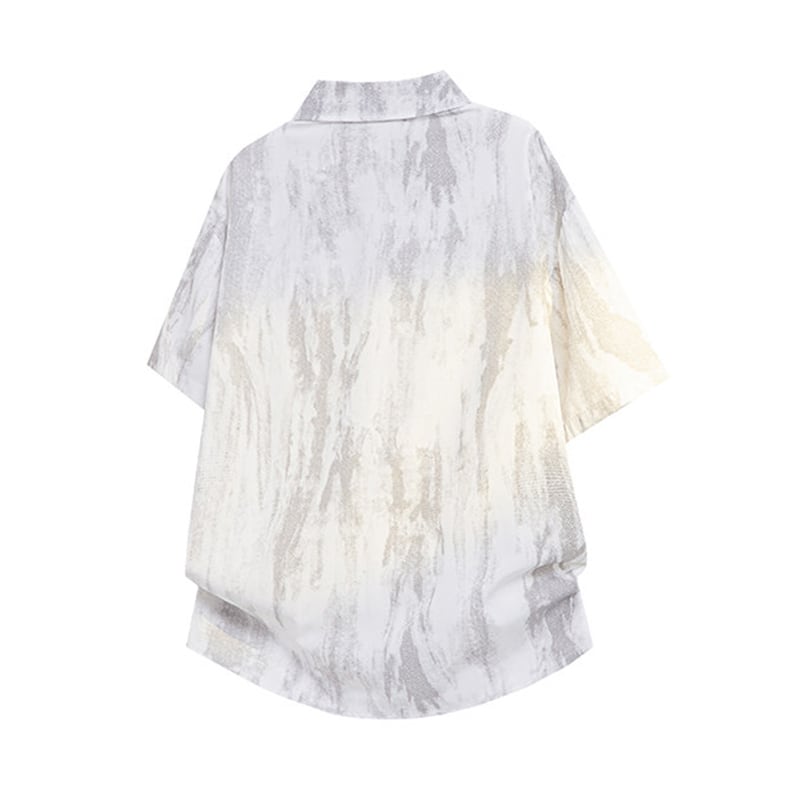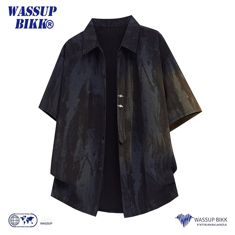 ♥夏の主役はこの絞り染めシャツ!【WSシリーズ】★チャイナ風トップス★ 2color シャツ 半袖シャツ ユニセックス 大きいサイズ 金属ボタン 黒 白 絞り染め