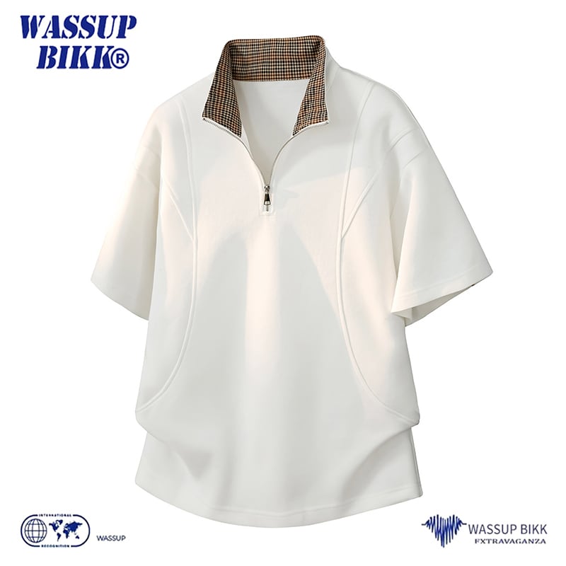 ♥ジップで涼しく、立って見える!【WSシリーズ】★POLOシャツ★ 3color トップス ユニセックス 大きいサイズ チェック柄