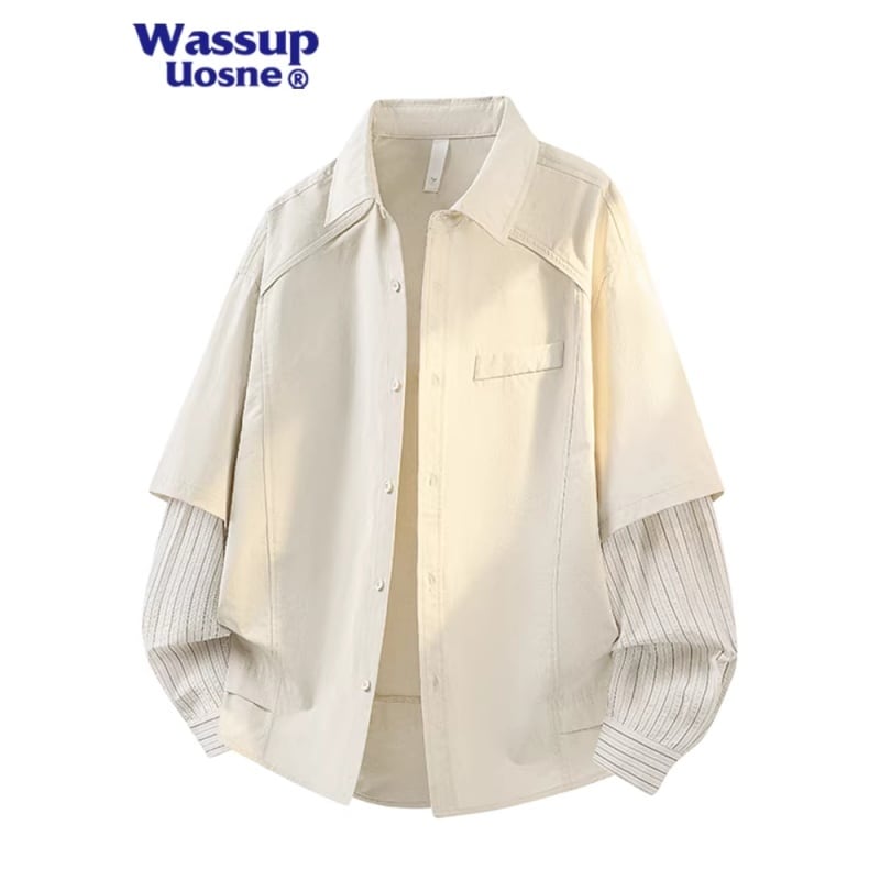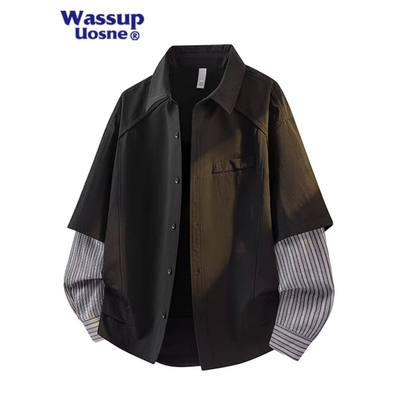 ✿1枚で重ね着のデザイン!【WSシリーズ】★シャツ★ 3color フェイクレイヤード S~7XL ユニセックス 長袖 トップス 縦縞 縞模様