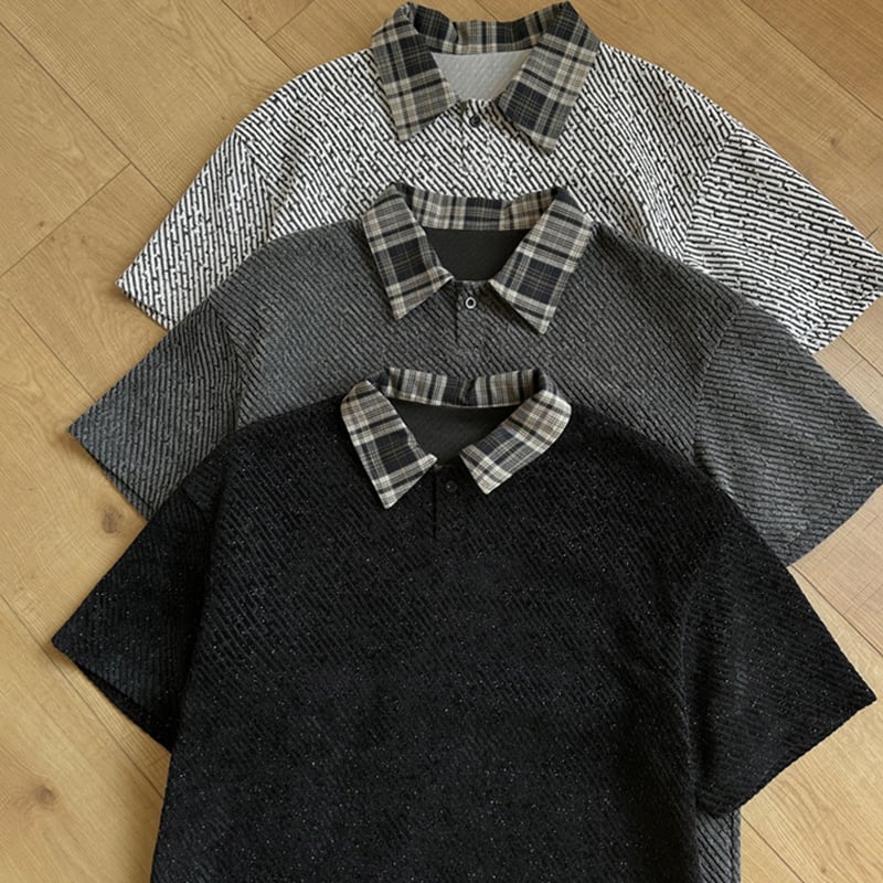 ♥チェック切り替えPOLO!【BIGEMANシリーズ】★POLOシャツ★ 3color ユニセックス トップス メンズ 大きいサイズ チェック柄