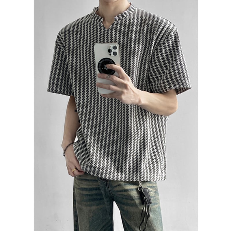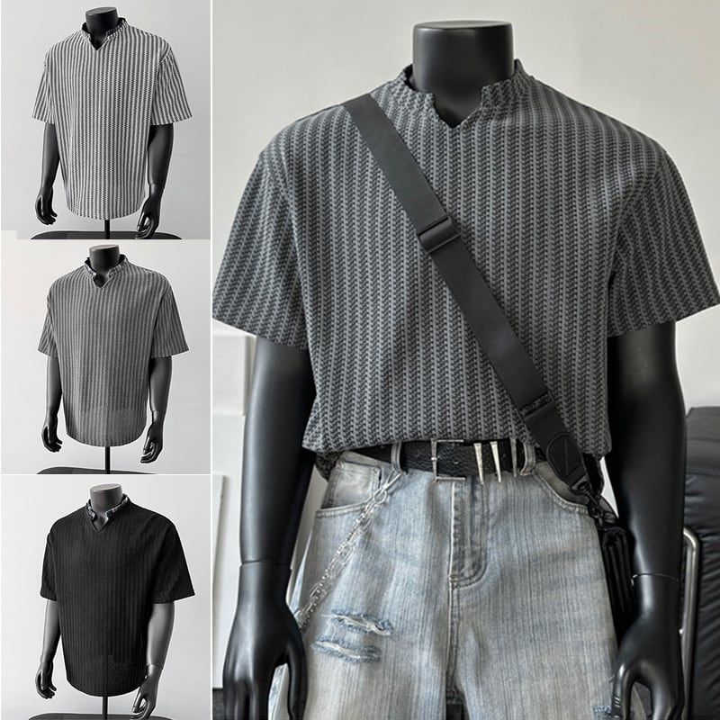♥チェック切り替えPOLO!【BIGEMANシリーズ】★Tシャツ★ 3color ユニセックス トップス メンズ 大きいサイズ 半袖 縦縞 縞模様