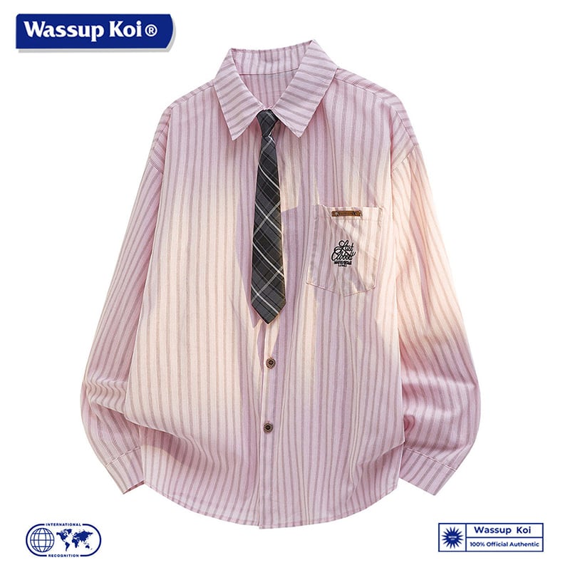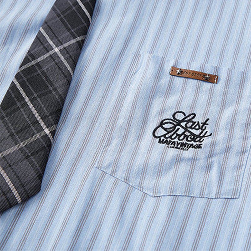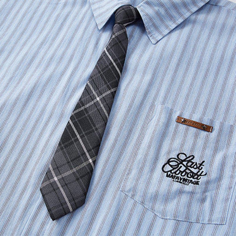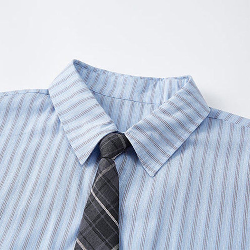 ♥ネクタイ付き縦縞半袖シャツ!【WSシリーズ】★シャツ★ 3color ネクタイ付き トップス 長袖シャツ ユニセックス メンズ 大きいサイズ 縦縞 縞模様