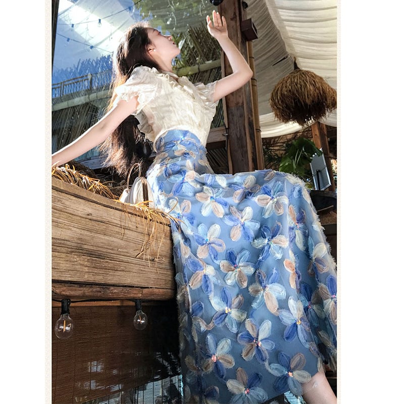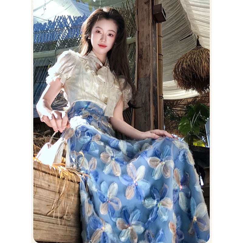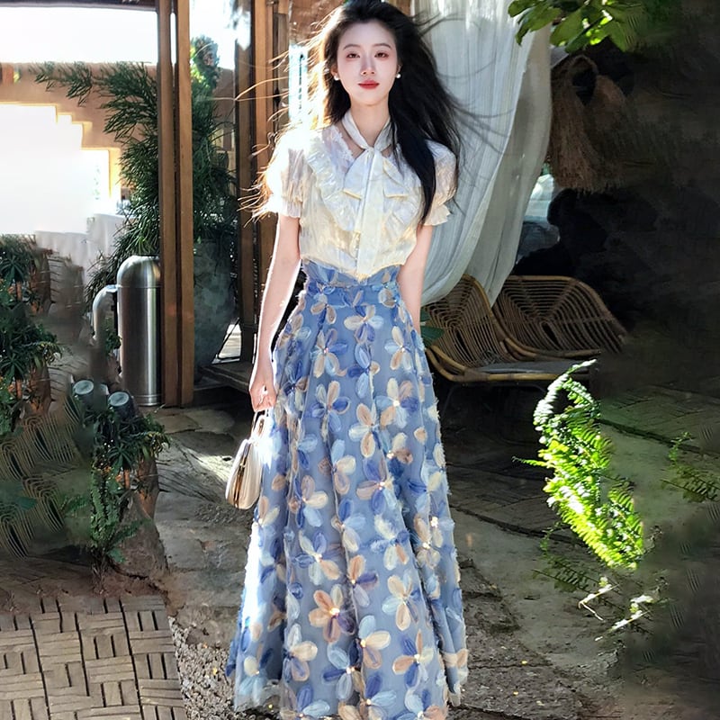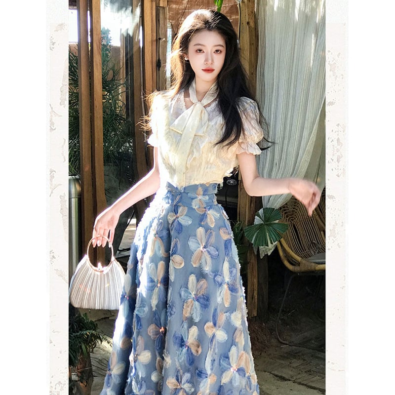 ♥甘すぎない、大人かわいいセット!【辰是Chenisシリーズ】★セットアップ★ シャツ+スカート 2点セット 上☟セット レディース 花柄 半袖