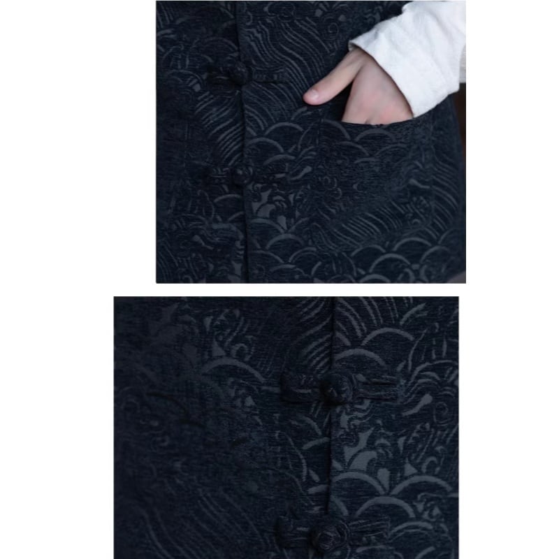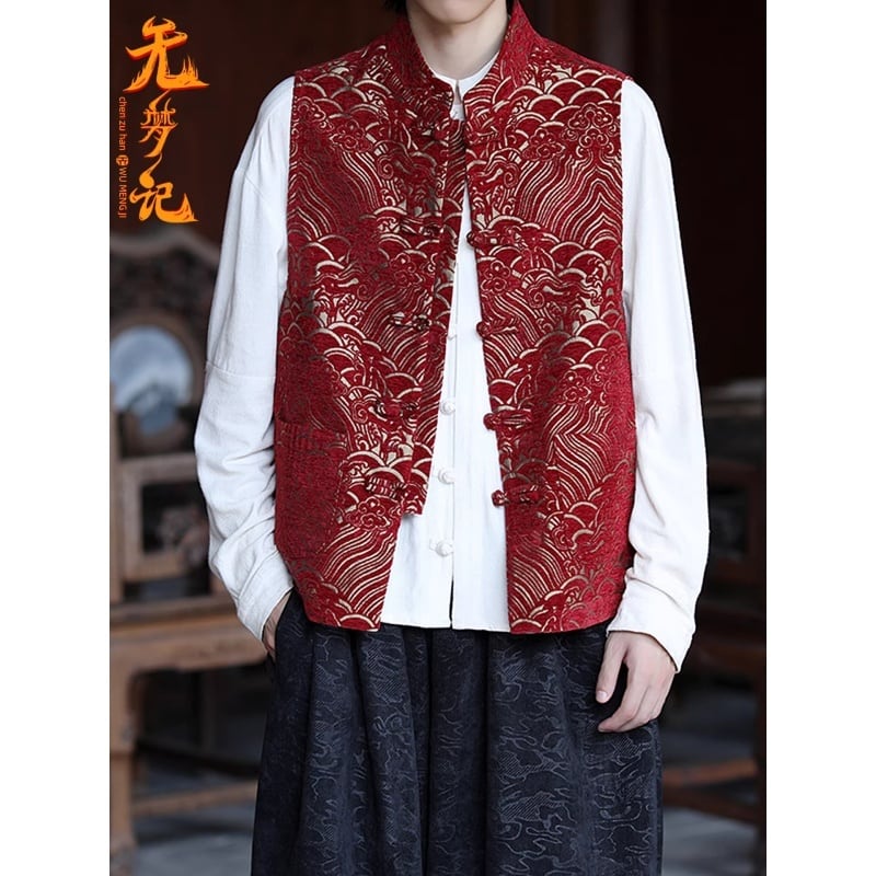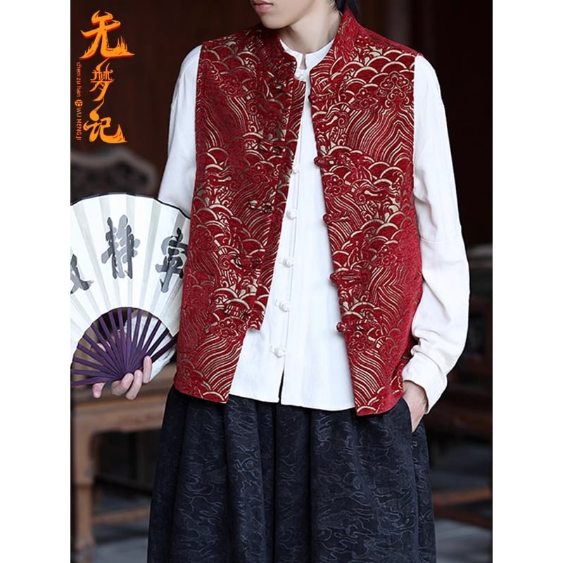 ❤レトロチャイナ風ベスト!【無夢記シリーズ】★チャイナ風ベスト★ トップス 中華服 改良唐装 ブラック 赤