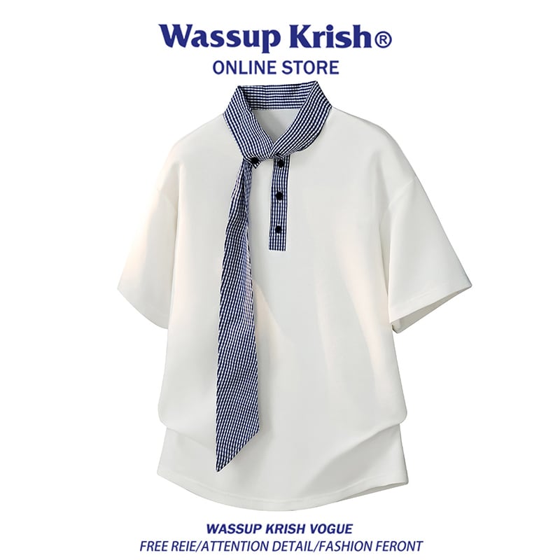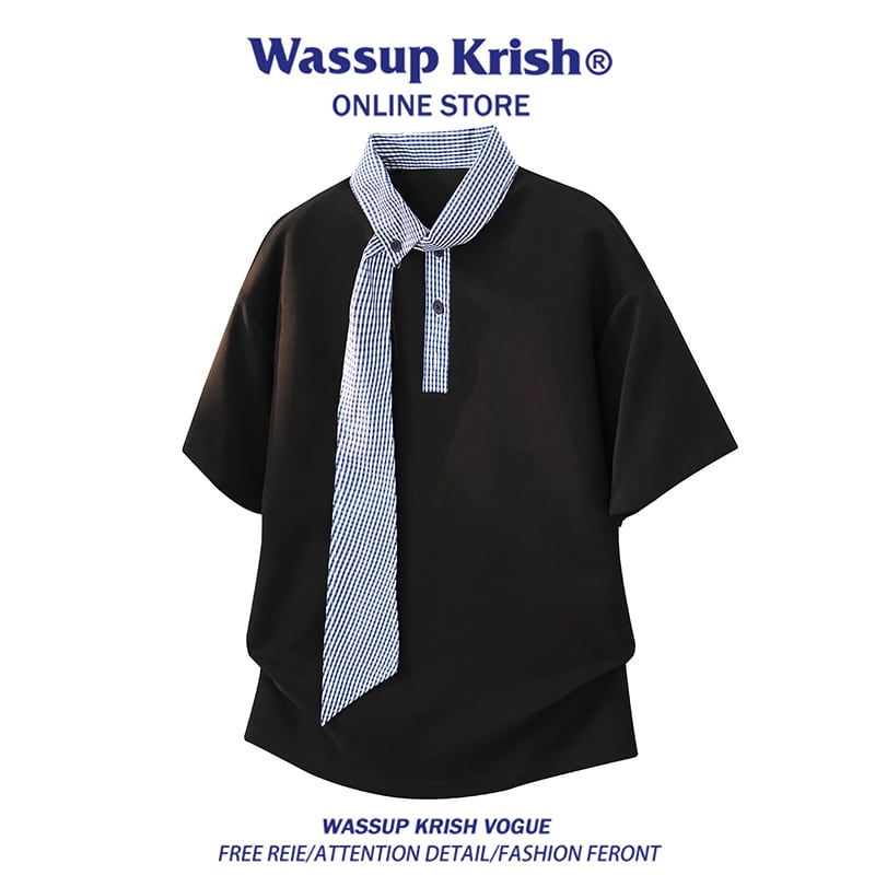♥つなぎで差がつく、ネクタイ風ポロ!【WSシリーズ】★Tシャツ★ 2color トップス 半袖 ユニセックス メンズ 切り替え