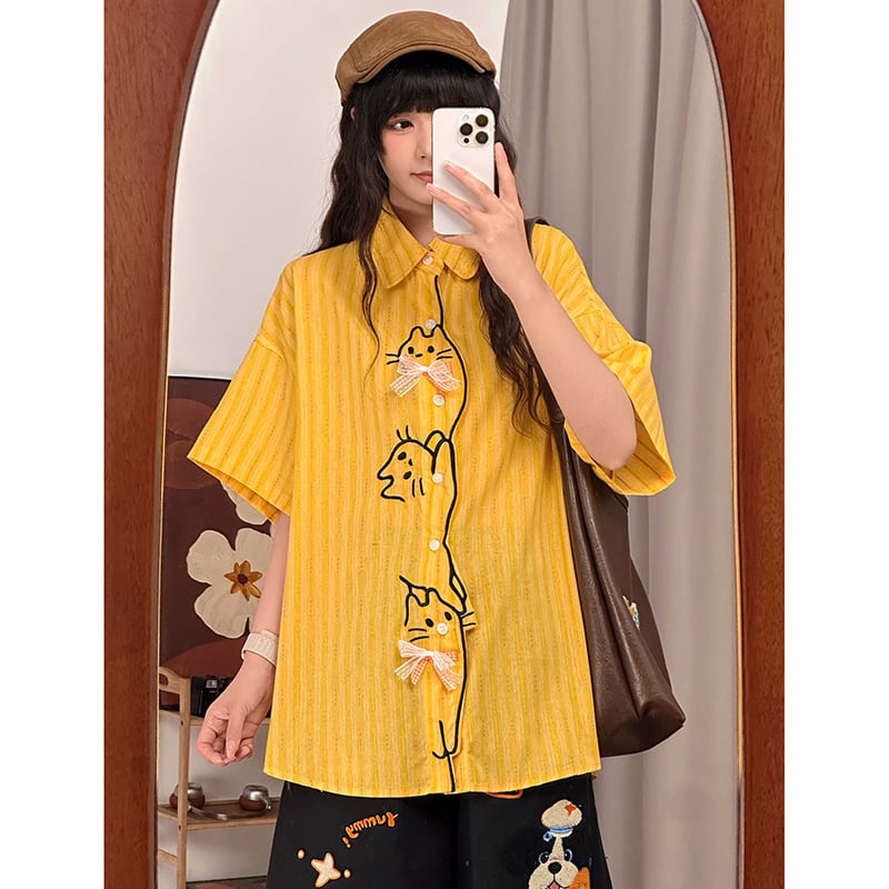 ♥猫好きにはたまらない!【UATONLINEシリーズ】★シャツ★ 2color トップス 半袖シャツ ユニセックス 猫 猫柄