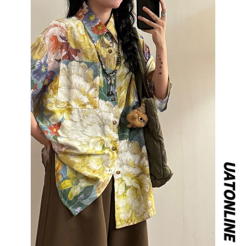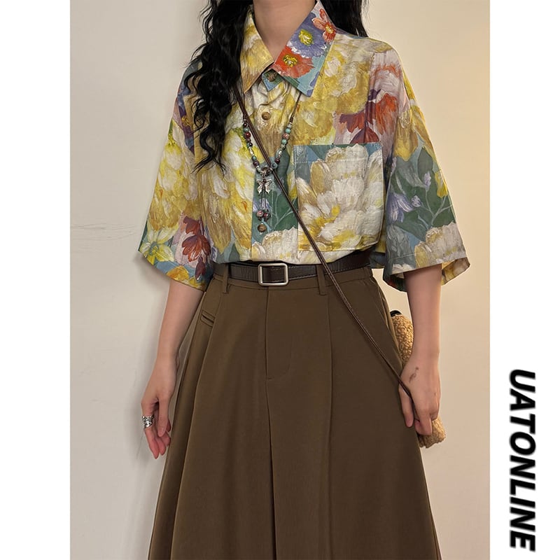 ♥柄で語る夏の一枚!【UATONLINEシリーズ】★シャツ★ 油絵風 トップス 半袖シャツ ユニセックス