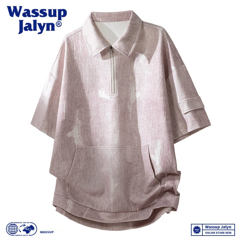 ♥ハーフジップ。ゆるポロ!【WSシリーズ】★POLOシャツ★ 3color トップス 半袖 ユニセックス メンズ 絞り染め