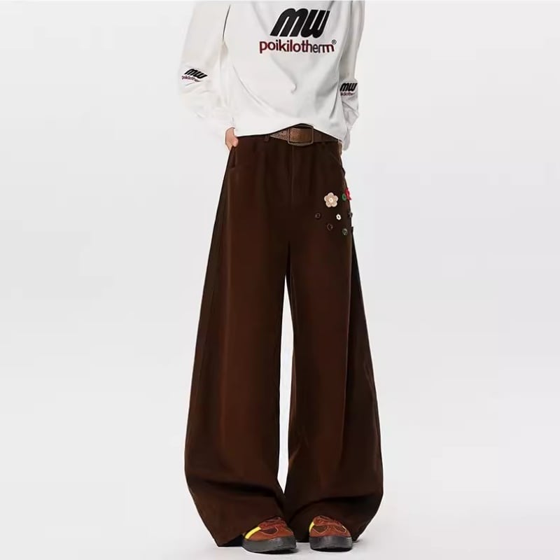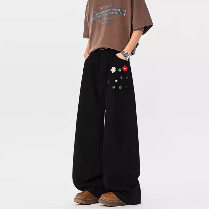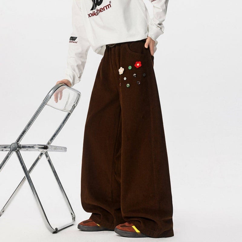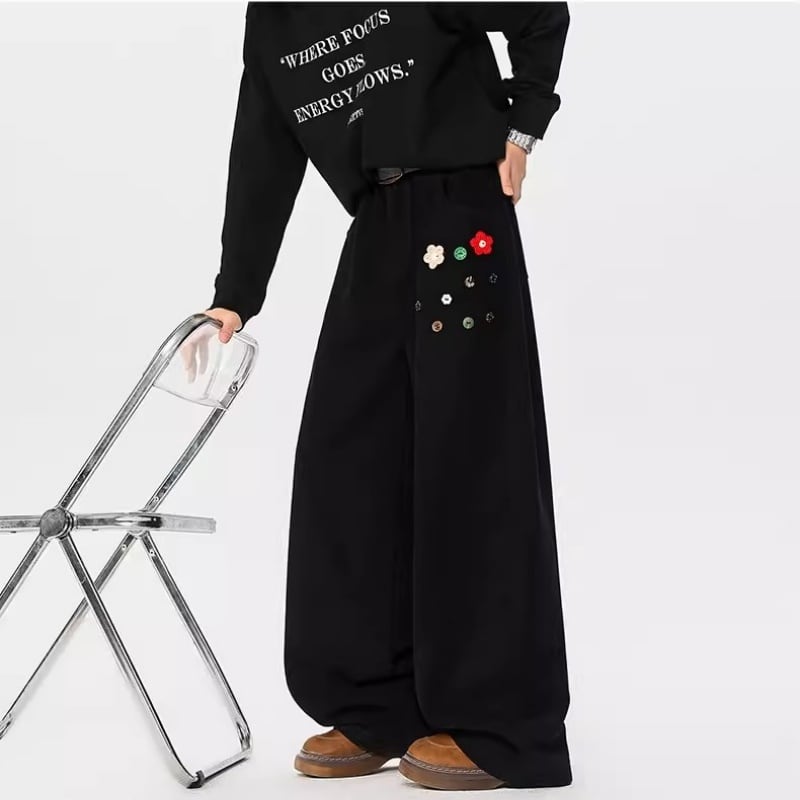 ♥ゆったりと、個性的に!【NANSHIシリーズ】★カジュアルパンツ★ ユニセックス 2color ズボン ボトムス ボタン設計 花柄