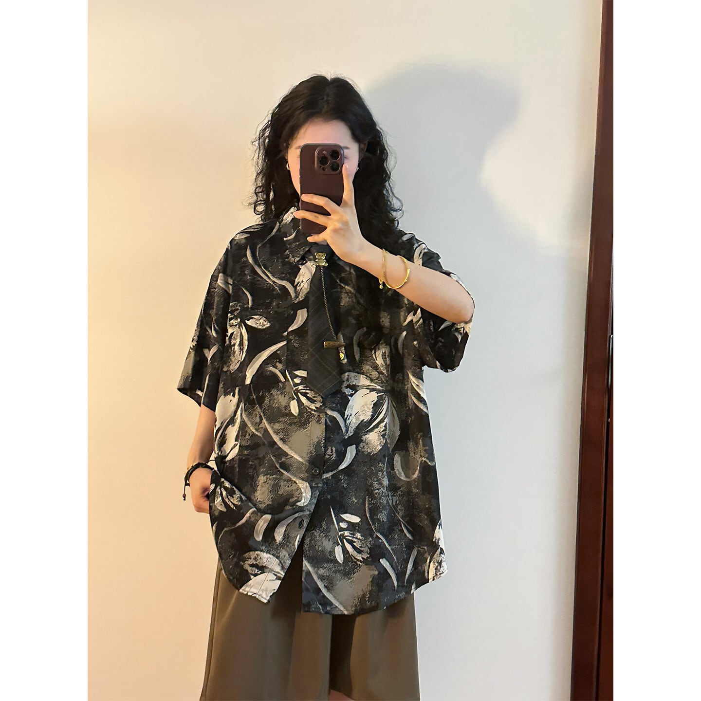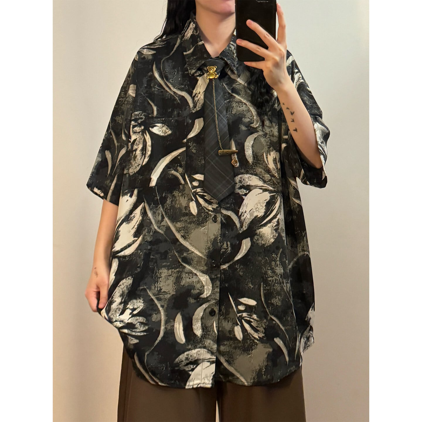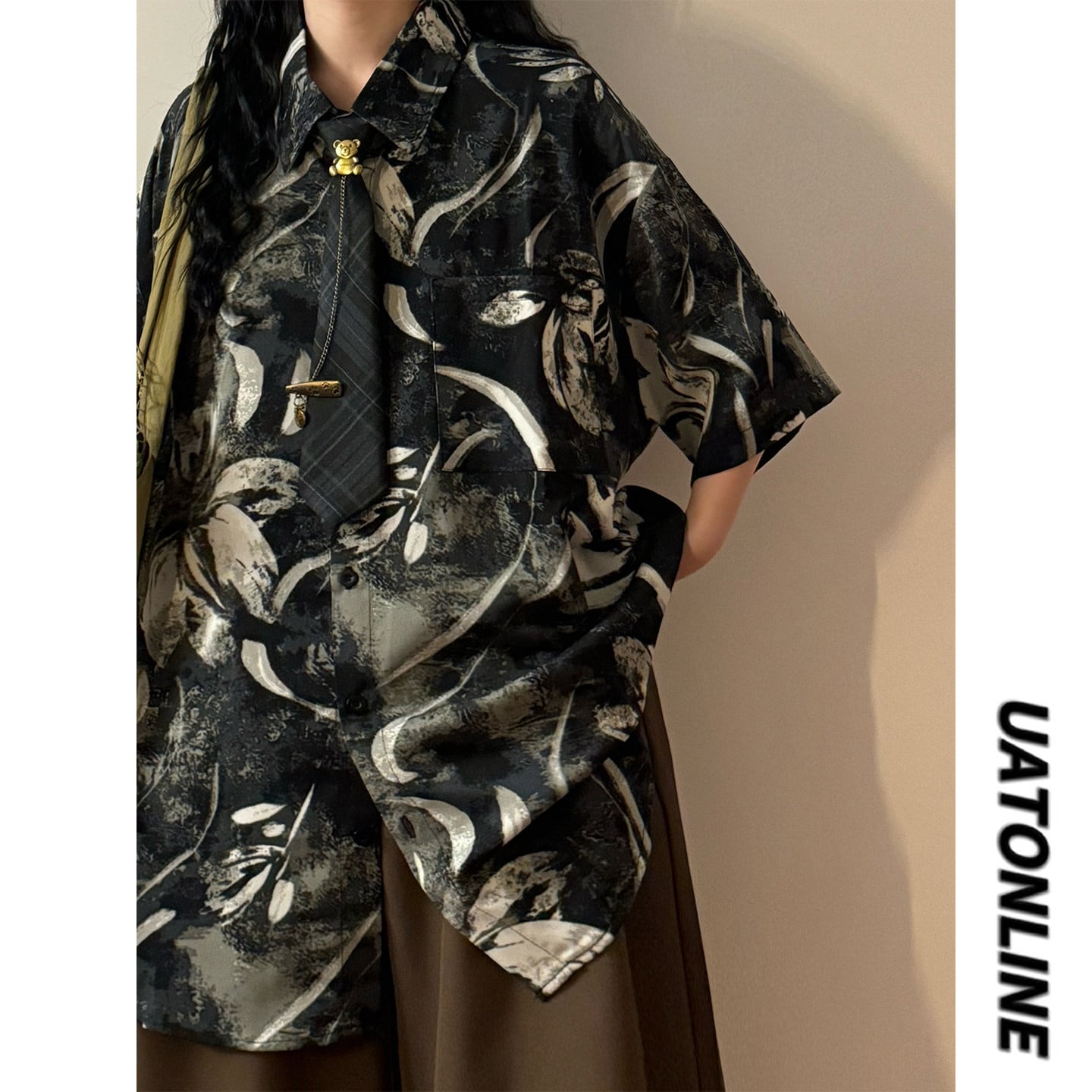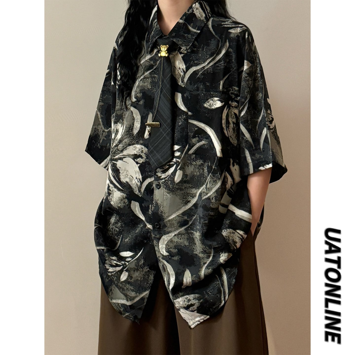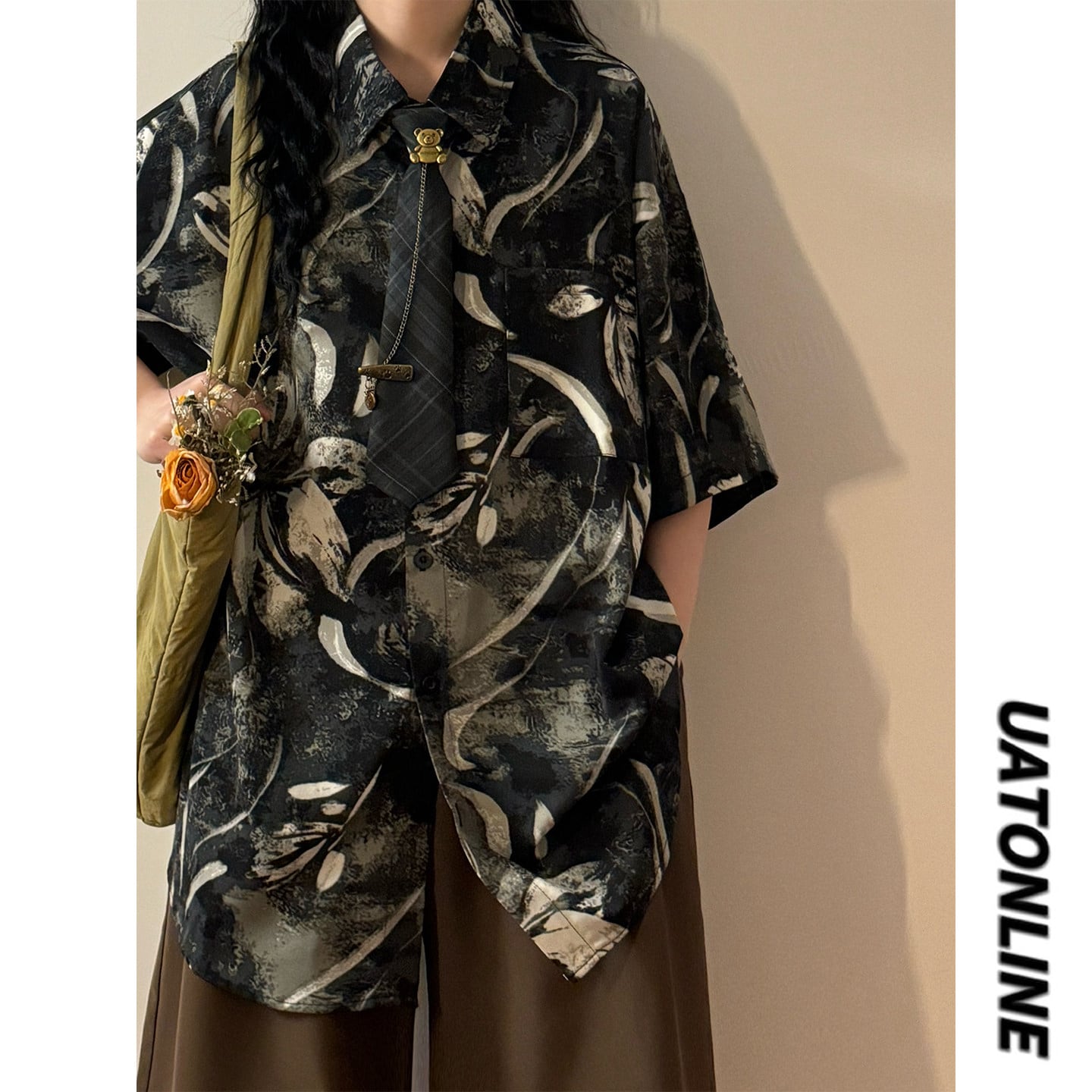 ♥デザインカラーで夏をおしゃれに!【UATONLINEシリーズ】★シャツ★ ネクタイ付きシャツ トップス 半袖シャツ ユニセックス 花柄シャツ